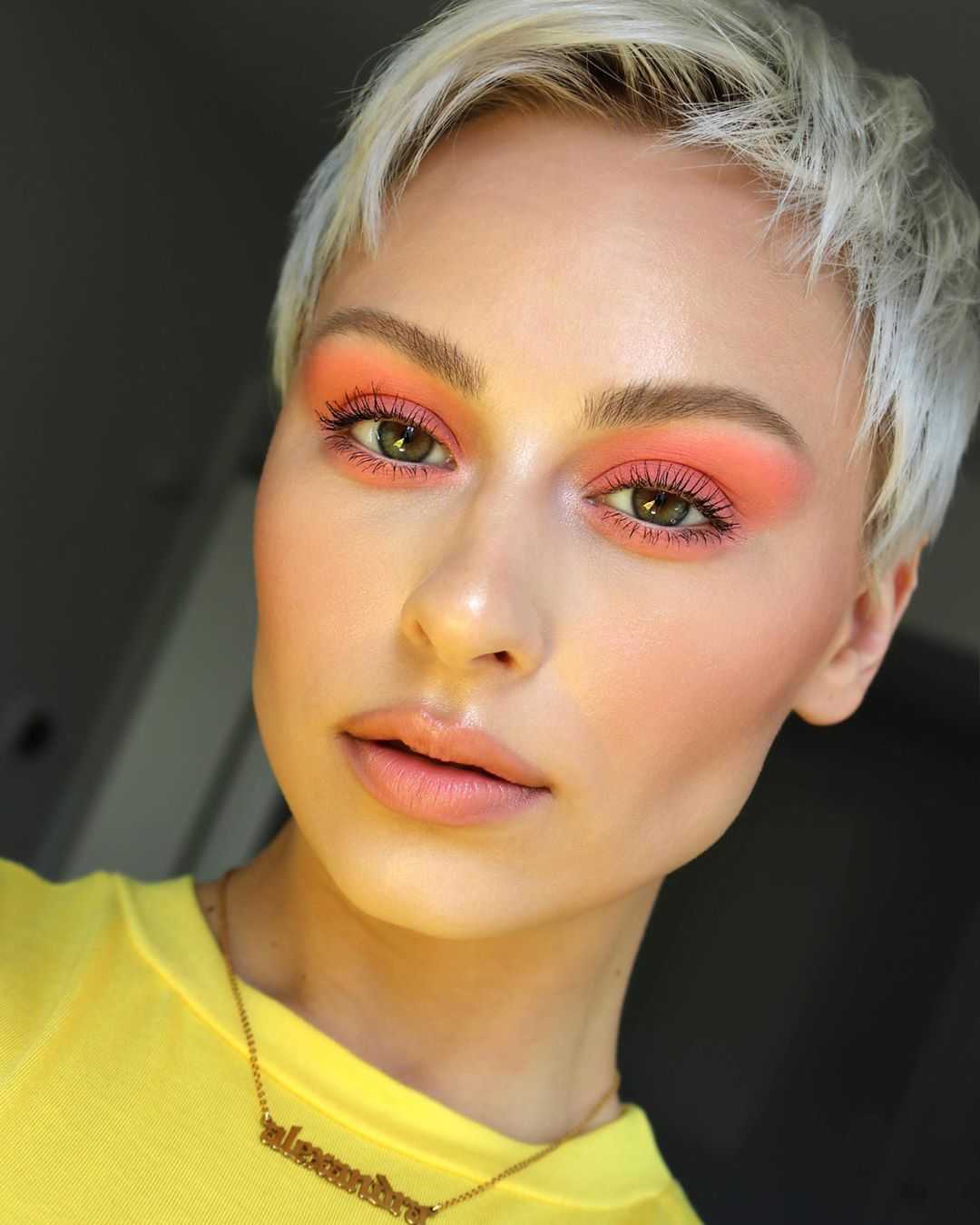 Мейкап будет выглядеть достаточно необычно, если сделать его, применяя желтые и оранжевые краски.