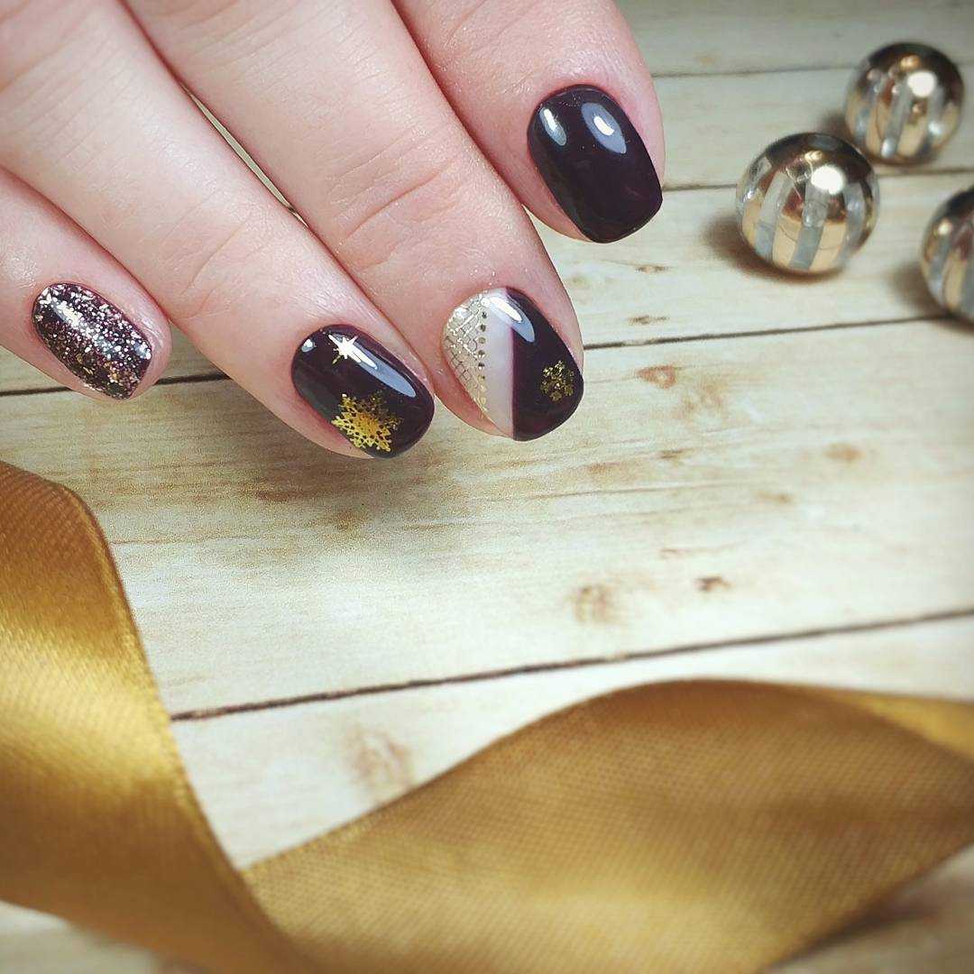 Такой маникюр красиво будет смотреться и на торжественном мероприятии, и на каждый день. Сегодня черно-золотой маникюр 2019 в тренде.