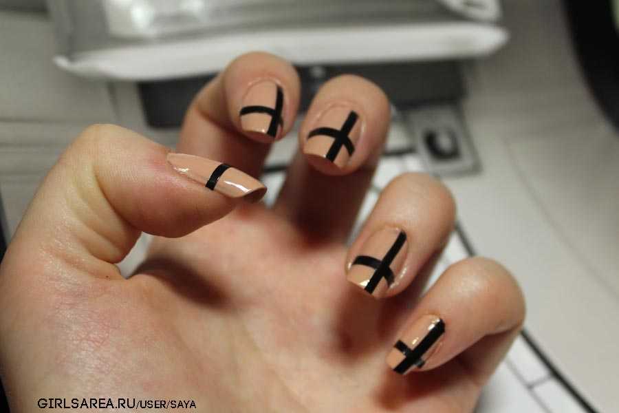 В этом уроке я постараюсь кратко пояснить, как сделать черно-бежевый маникюр с крестами, такой как вы видите на фото: