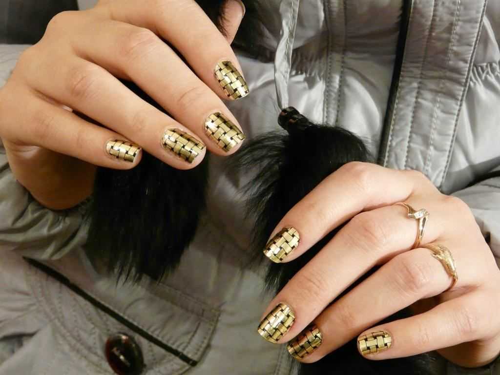 2. Техника блокирования цвета. Опишу кратко: 1. наносим фон и хорошо высушиваем; 2. наклеиваем скотч на каждый ноготь с двух сторон так, чтобы остались незакрытые вертикальные полосы, прокрашиваем полосы черным лаком, высушиваем; 3. аналогичным способом создаем горизонтаьные полосы, высушиваем. Минусы такого способа — необходимость заморачиваться со скотчем и очень(!) долго и тщательно высушивать каждый слой лака. Поскольку оба этих пункта меня не радуют, предлагаю третий вариант..