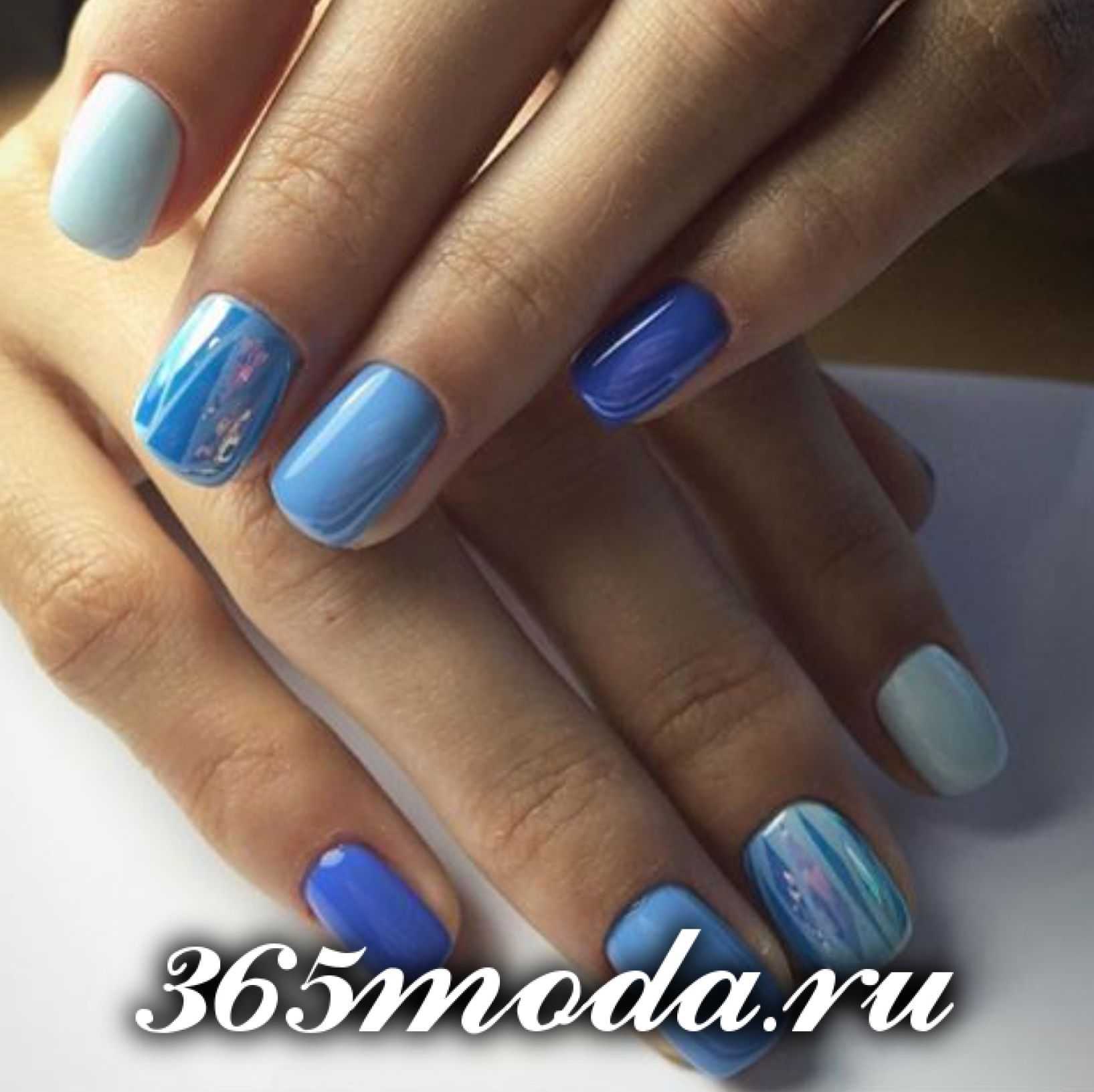 Не стоит рисовать цветы на всех ногтях, лучше сделать акцент на одном или нескольких. Очень популярным в этом году считается геометрический рисунок. Стоит отметить, что не обязательно делать всякие ромбы и кружечки, достаточно будет нанести пару ломаных линий, либо зигзагов, а также полосок. Еще одним, очень популярным дизайном, считается градиент. Главным правилом выполнения маникюра, считается правильно подобранные цвета. Лучшие идеи данного маникюра на 2019 год смотрите в нашей фото подборке.