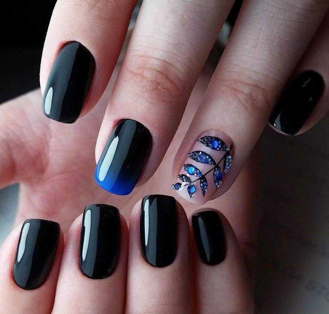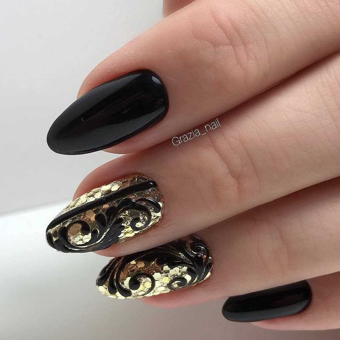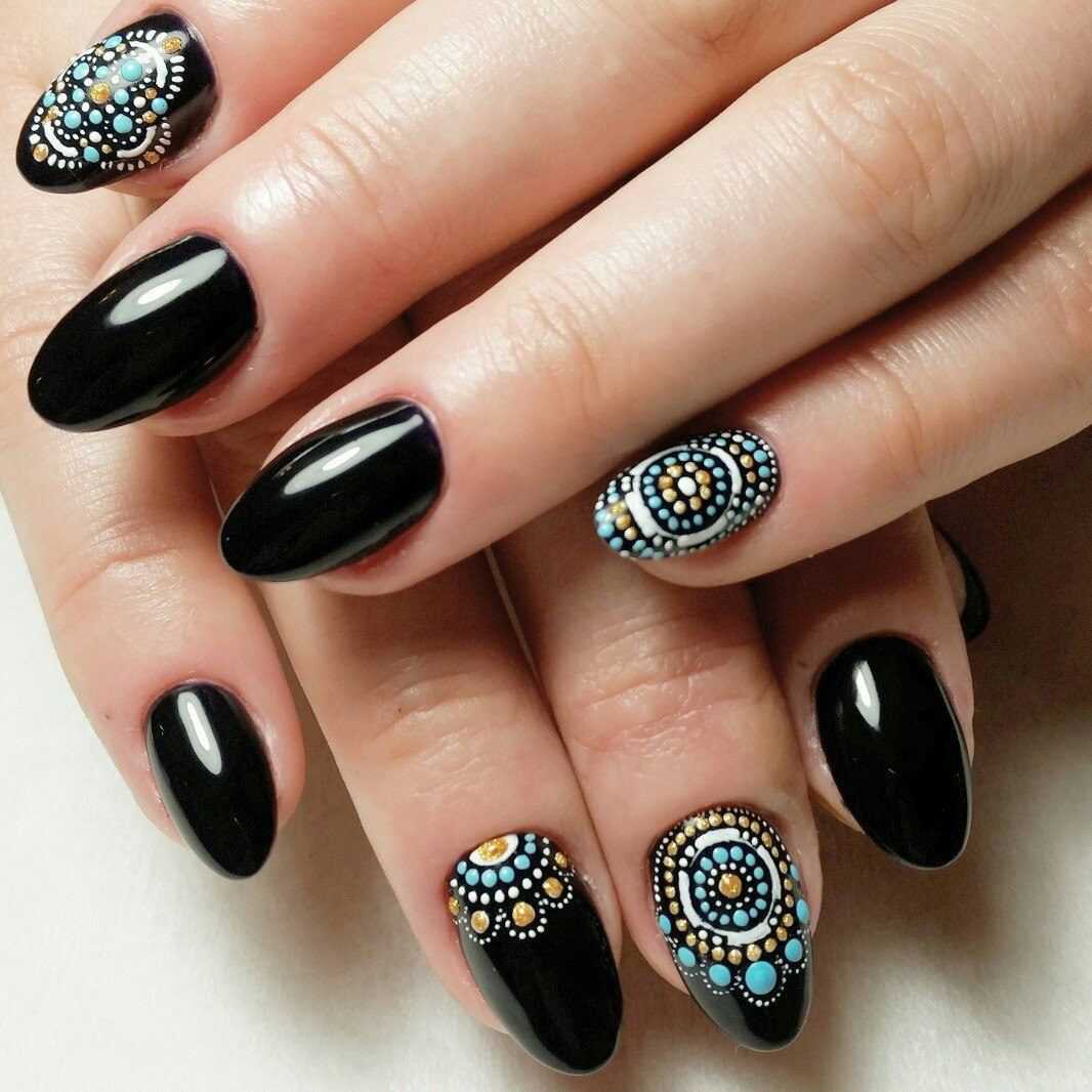 Многие воспринимают черный цвет на длинных ногтях довольно негативно. Действительно, слишком экстремальная длина в сочетании с острыми углами может придавать черному нейл-арт ненужную мрачность и грубость.
