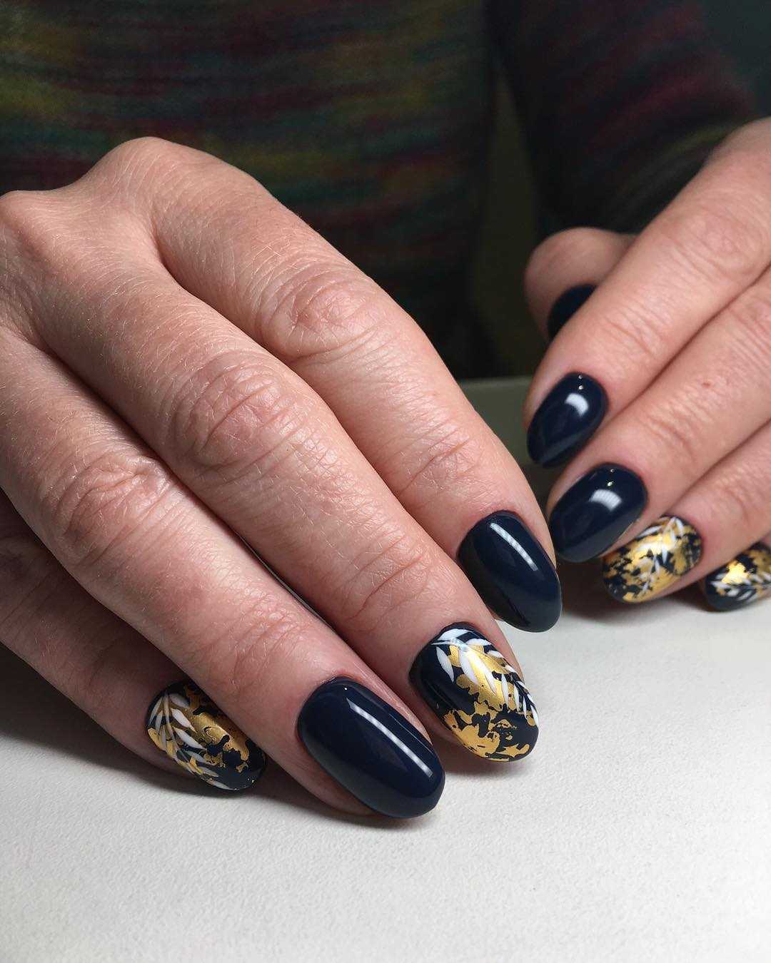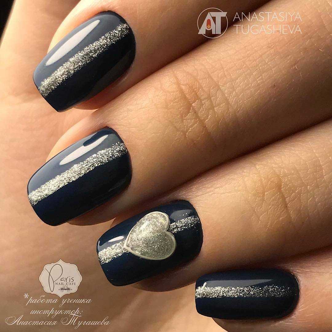 Темный маникюр на короткие ногти выглядит уместно в любой ситуации. Он наделяет свою обладательницу изысканностью и подчеркивает наличие хорошего вкуса. На фото видно, что он одинаково хорошо смотрится в классическом, романтическом, вечернем так и в Casual стиле. Маникюр в темных тонах подчеркнет прелесть вечернего лука, станет изюминкой коктейльного образа