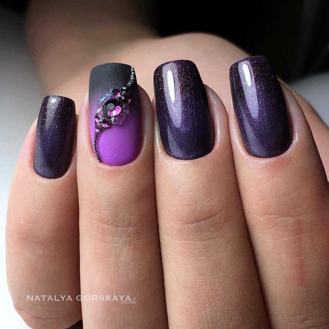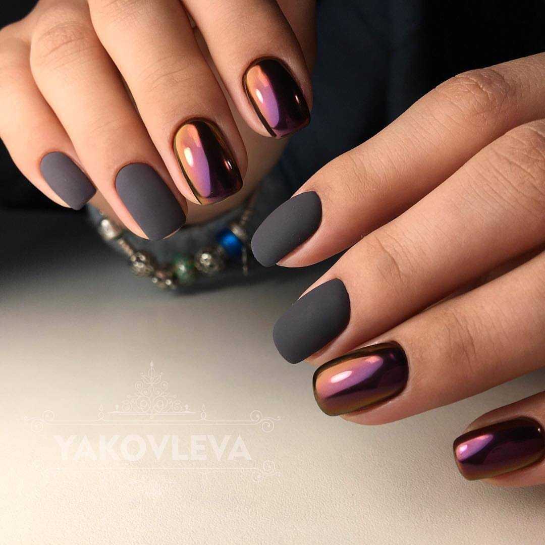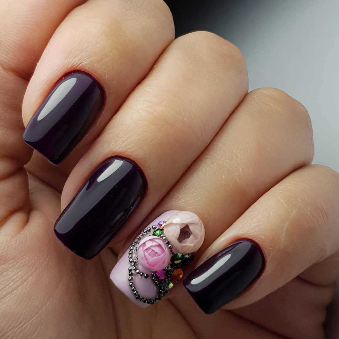 Темный маникюр одинаково востребован как на длинных ноготках, так и на коротких ноготках. Он подойдет к вечерним лукам и к повседневным нарядам.