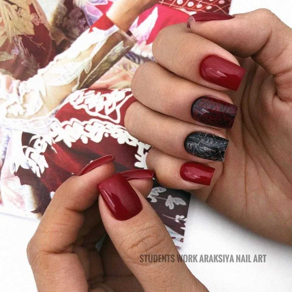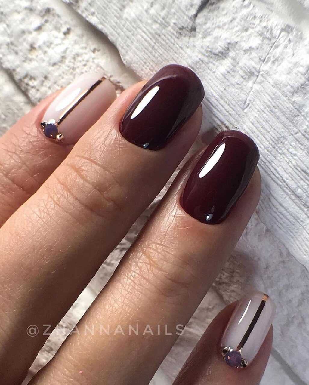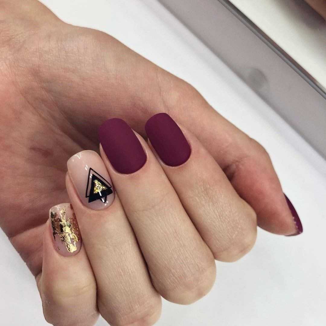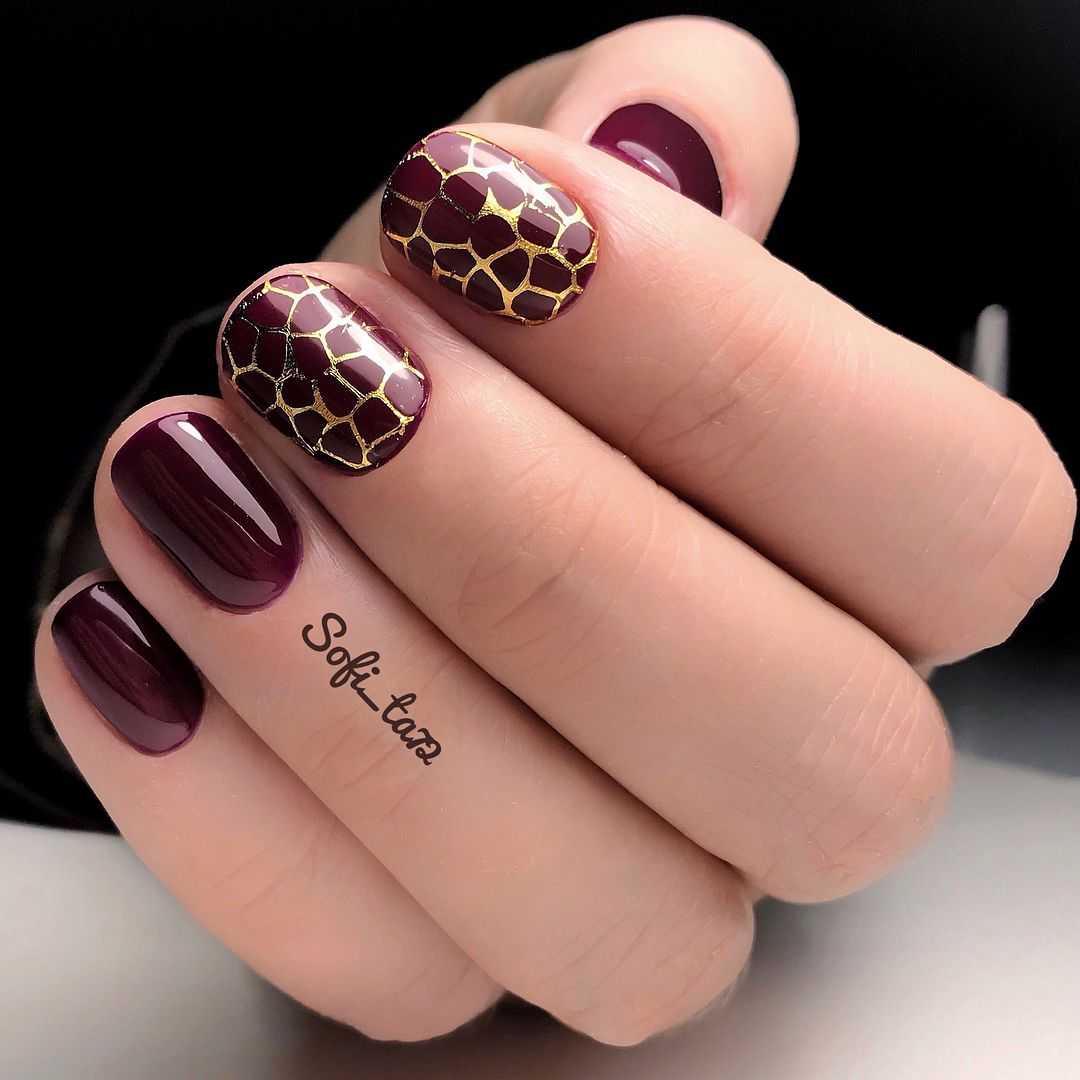 Маникюр в бордовом цвете – это всегда эффектно, кричаще и элегантно. Ведь именно бордовый цвет является самым роскошным и богатым из всей палитры темных цветов. Он одинаково идеально смотрится как в однотонном цвете, так и с добавлением контрастного декора. Что касается праздничного оформления, то лучше всего остановиться на акриловой пудре, кружевных картинах. На особом уровне для украшения бордового маникюра есть золотое дополнение, которое выглядит достаточно элегантно и гламурно. С помощью золотых пайеток можно выделить геометрические элементы, французскую улыбку или яркие узоры.