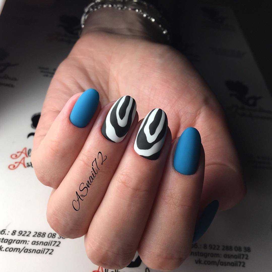 - Животные мотивы. Оригинально смотрятся принты, имитирующие окрас животных – зебры, тигра, леопарда. Короткие овальные ногти с таким маникюром выглядят необычно, аккуратно.