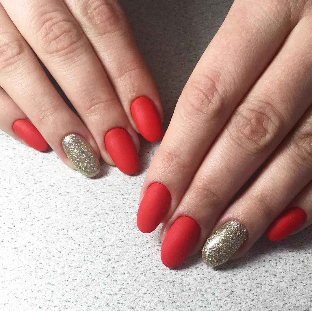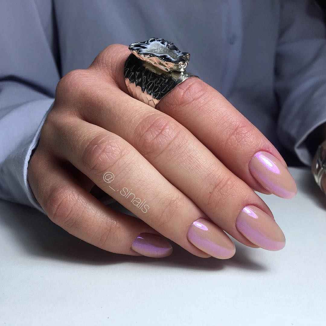 Всегда в тренде, за счет своей универсальности. Дизайн ногтей округлой формы может быть любым. Очень часто для оформления используются лаки с глянцевым и матовым эффектом. Комбинируя их можно получить красивый результат. Также для дизайна применяют блестки мелкого помола, акриловую пудру, бархатный песок.