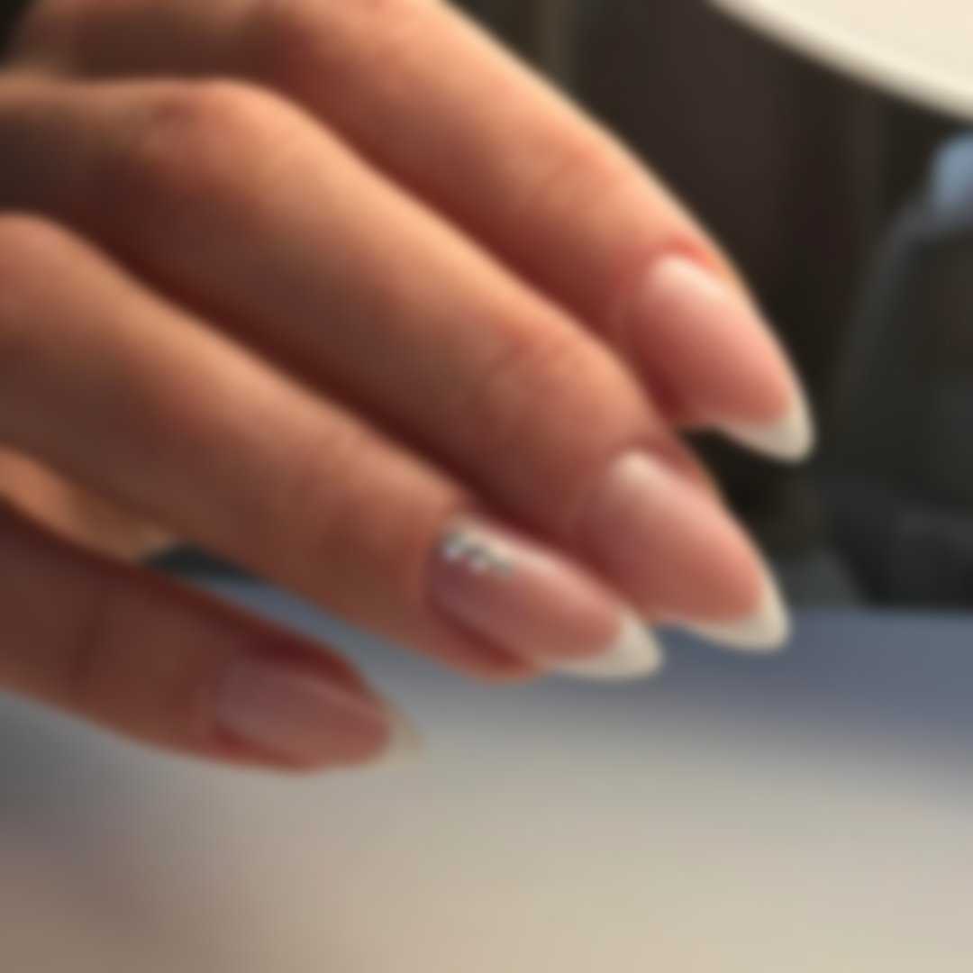 Nude-френч – непреходящая классика, особенно востребованная в офисной и бизнес-среде. Подобный нюдовый маникюр на длинные ногти маскирует полноту рук, с ними даже утолщенные пальцы выглядят более изящными. Нежные телесные тона фона и лаконичная белая улыбка выглядят очень аккуратно и на светлой, и на загорелой коже. Будьте осторожны: чрезмерно длинные ногти будут смотреться агрессивно, если выделить белым лаком всю свободнорастущую часть.