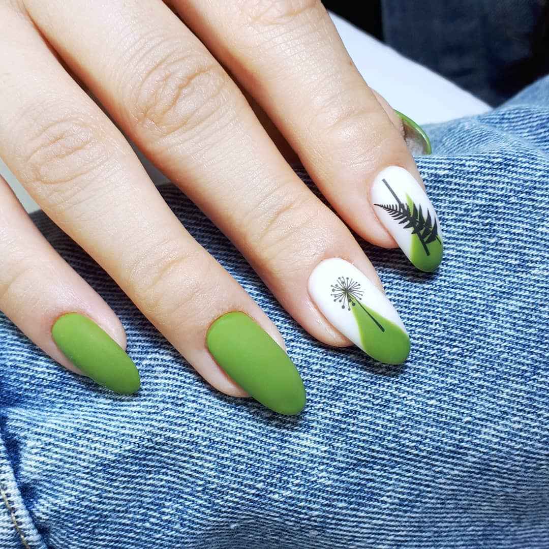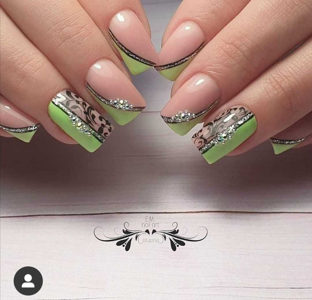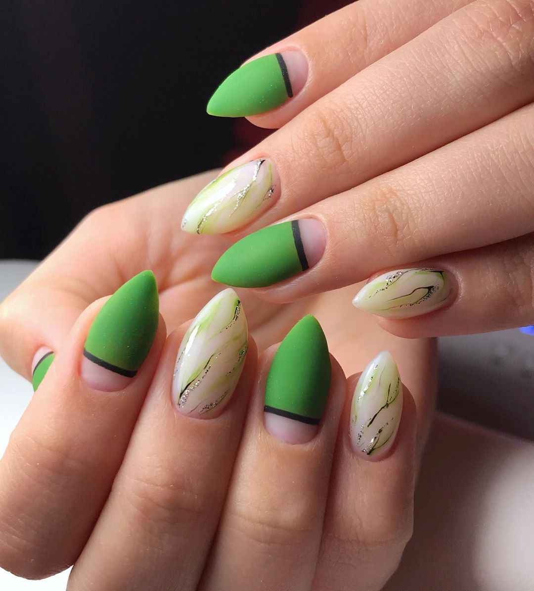 Зеленый дизайн ногтей в сочетании с другими цветами