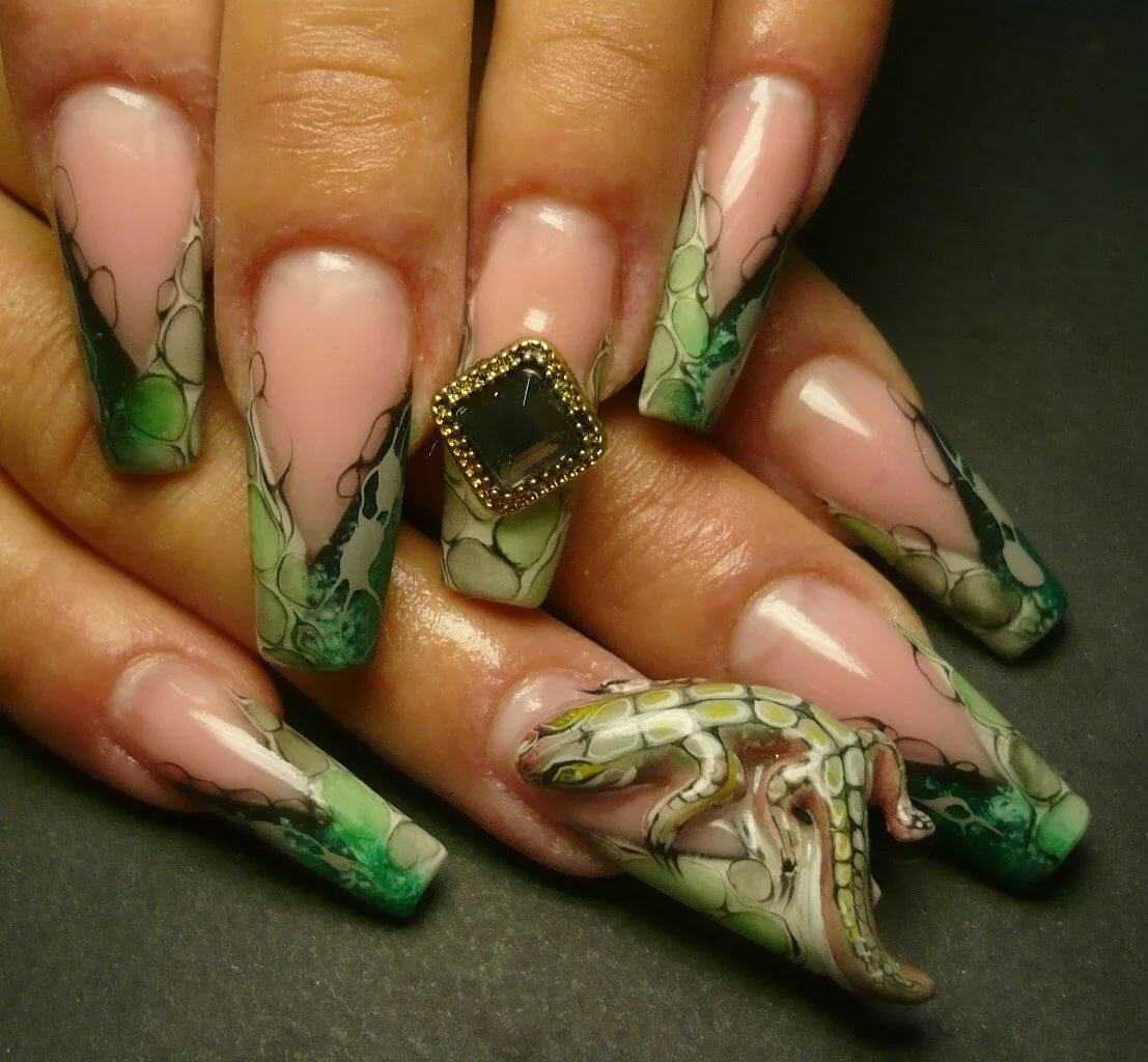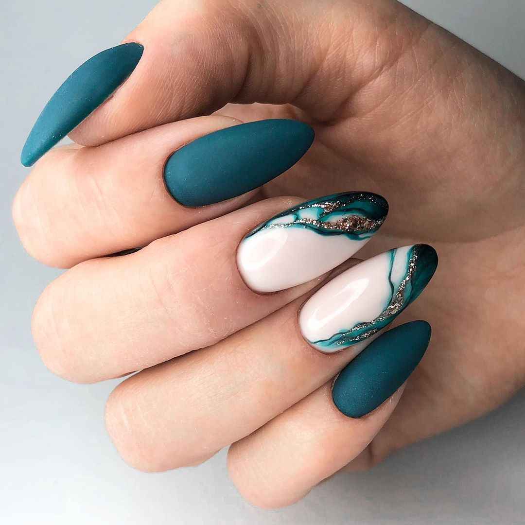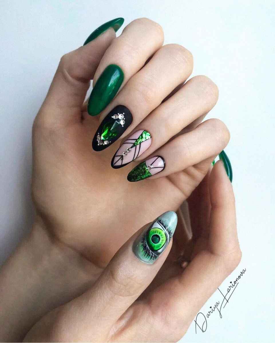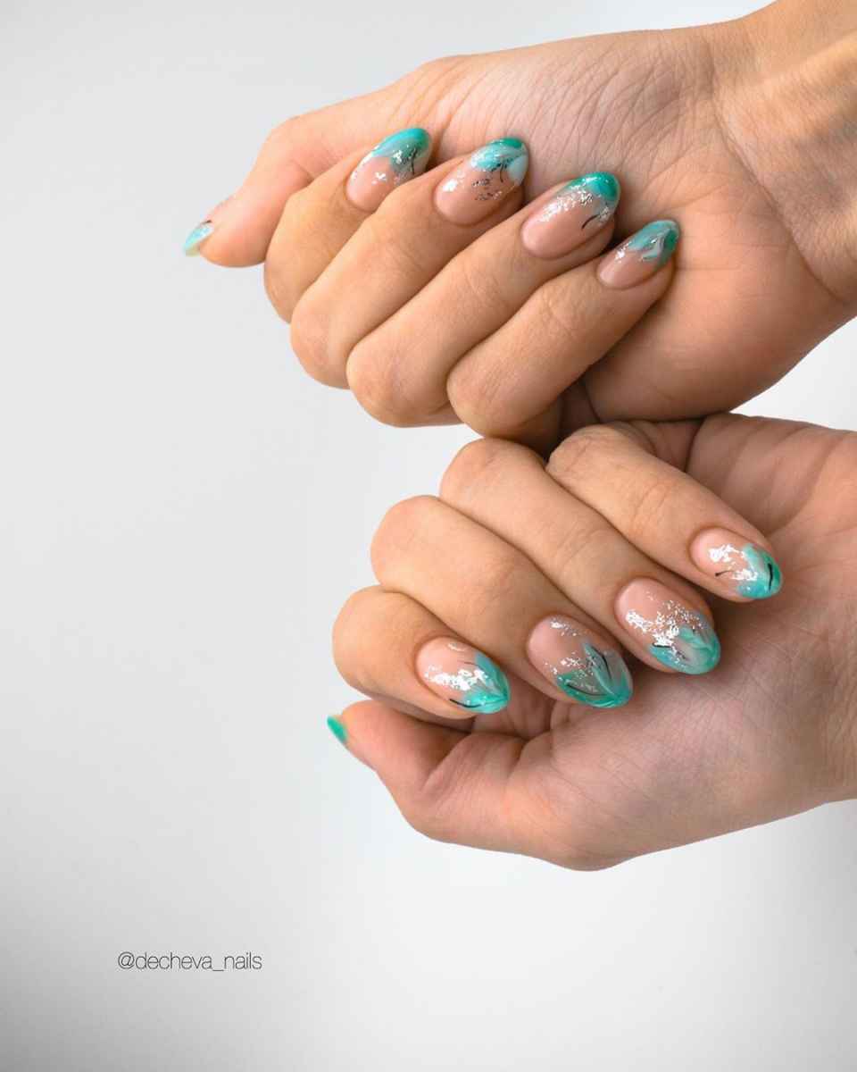 Зеленый дизайн ногтей в сочетании с другими цветами