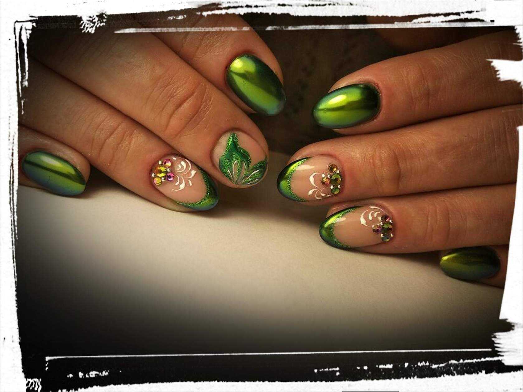 Зеленый маникюр отлично впишется в любой образ. Это всесезонный цвет, оттенки которого позволяют создавать нежный весенний дизайн, яркий летний нейл-арт, спокойный осенний и холодный зимний маникюр.