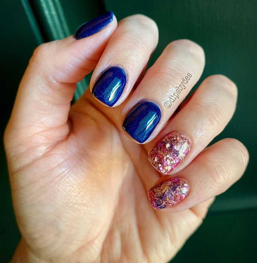 Блёстки на ногтях – глиттер, шиммер или камифубуки, считаются идеальной заменой объёмным стразам и бусинам. Они смотрятся не менее привлекательно на ноготках и прекрасно преображают любой стиль оформления. Блёстки бывают разного размера, цвета и форм, могут выпускаться в сухом либо жидком виде. В сезоне 2023 с их помощью можно выделять акцентный ноготок, создавать невероятные узоры и дополнять рисунки.