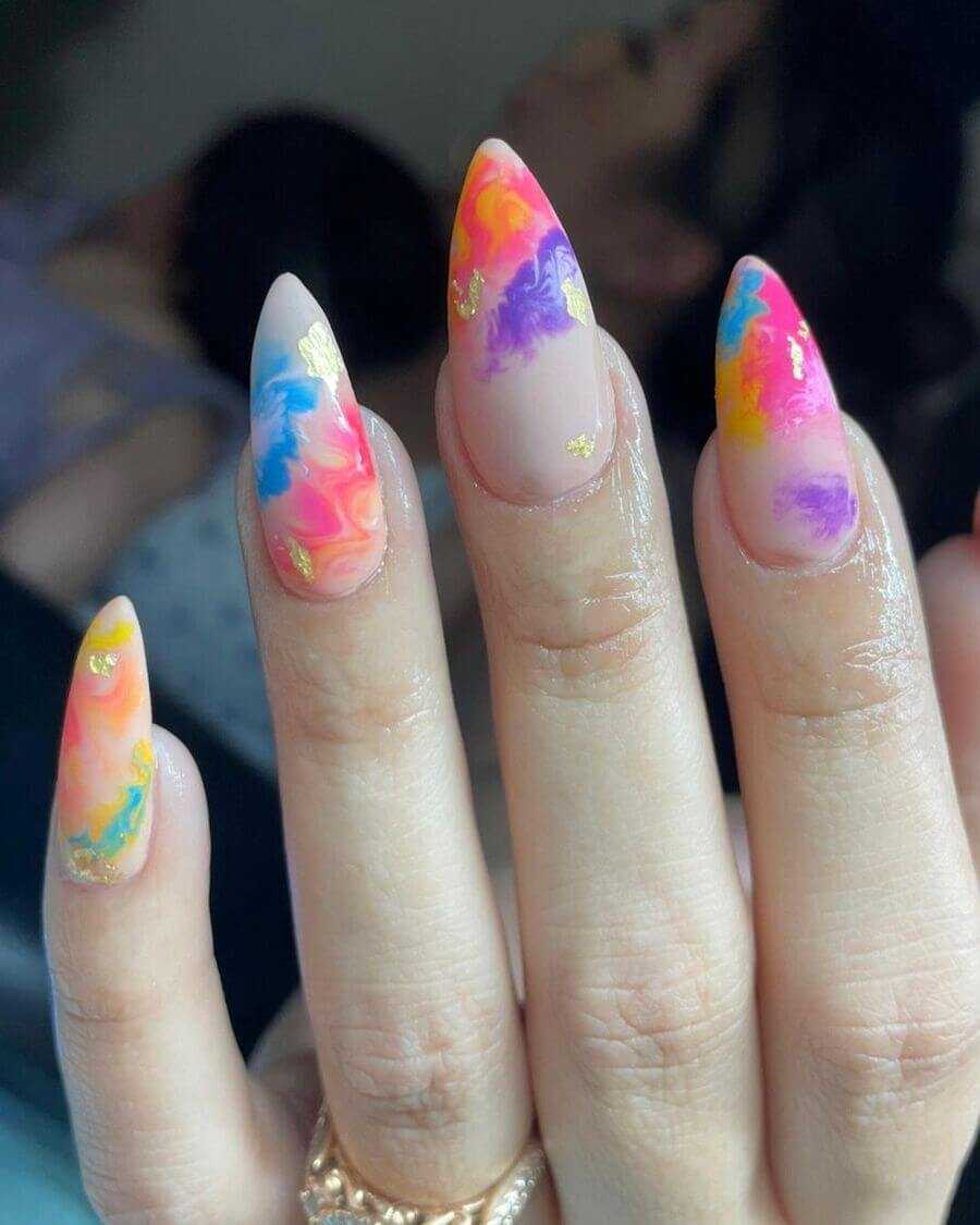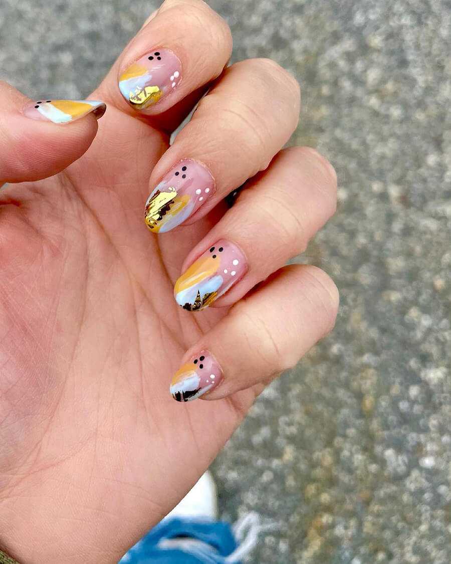 Этот маникюр на ногтях разной формы и длины может выглядеть очень эффектно и привлекательно