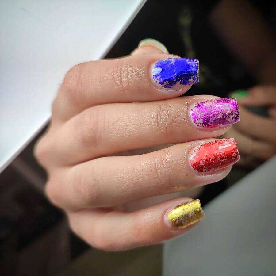Фольгированный материал позволяет создавать объемные, насыщенные оттенки покрытия, дополнить маникюр и педикюр цветовыми акцентами даже в домашних условиях.