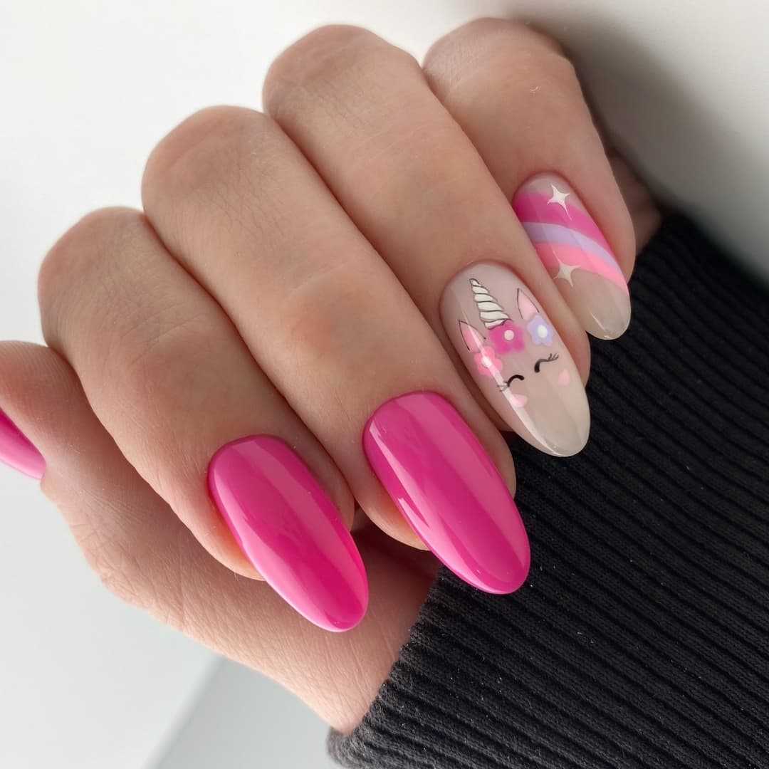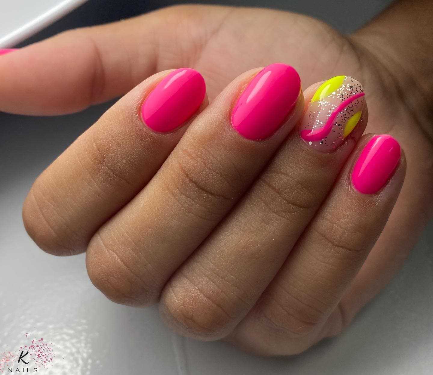 Ярко-розовый маникюр создаст тот самый оригинальный акцент в образе, который не превратит тебя в городскую сумасшедшую (что рискует случиться, если слегка переборщить с креативностью в случае с одеждой или аксессуарами). С ним ты всегда будешь заметна, но ощутишь себя комфортно как на мероприятиях, так и в повседневной жизни. Ниже мы подобрали для тебя десятки идей ярко-розового маникюра гель-лаком с рисунками.