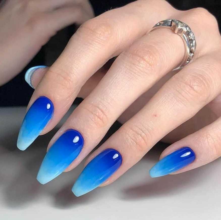 Оттенки синего никогда не выходят из моды. Синий градиент может начинаться от густого королевского и заканчиваться бирюзовым, голубым или белым.