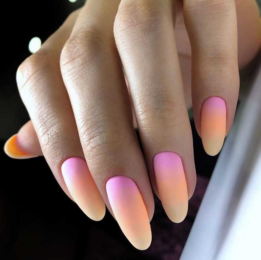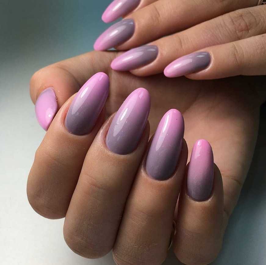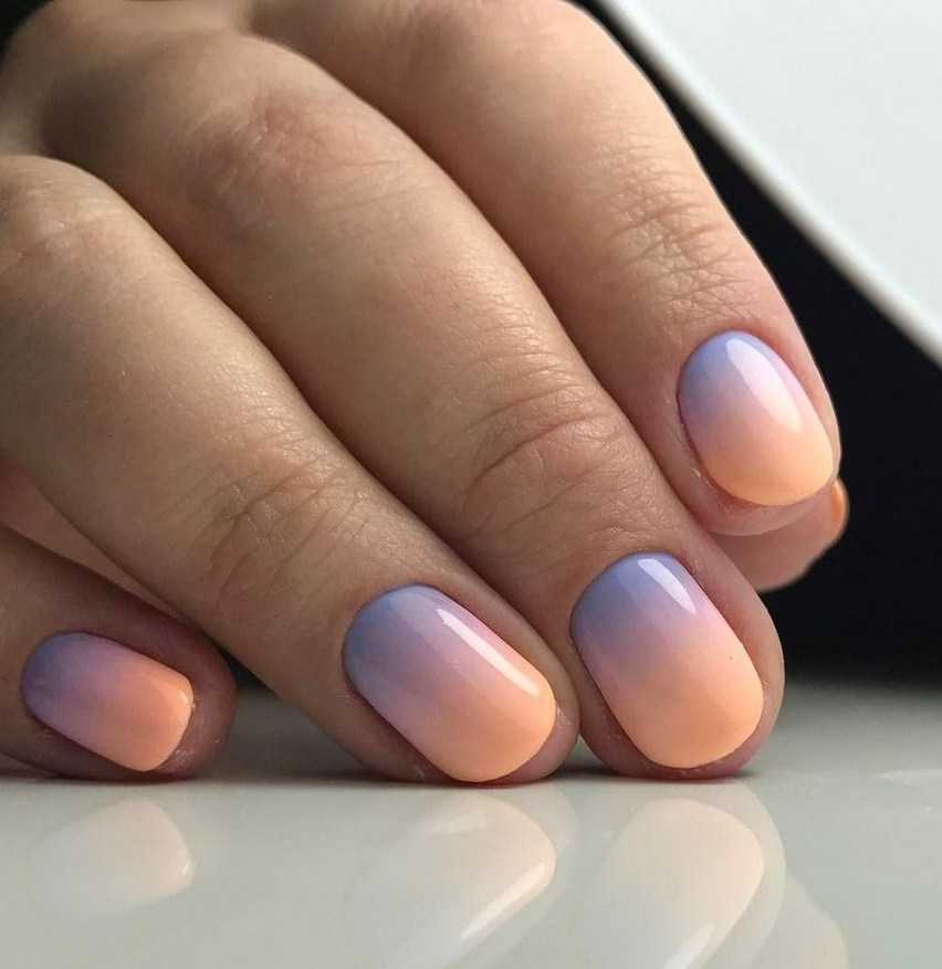 Опытные мастера создают настоящие шедевры при помощи кисти, плавно размывая границы между цветами вручную прямо на ногтевой пластине. Интересный эффект дают термопокрытия: под воздействием температуры они способны менять цвет, образуя ненавязчивый эффект градиента.