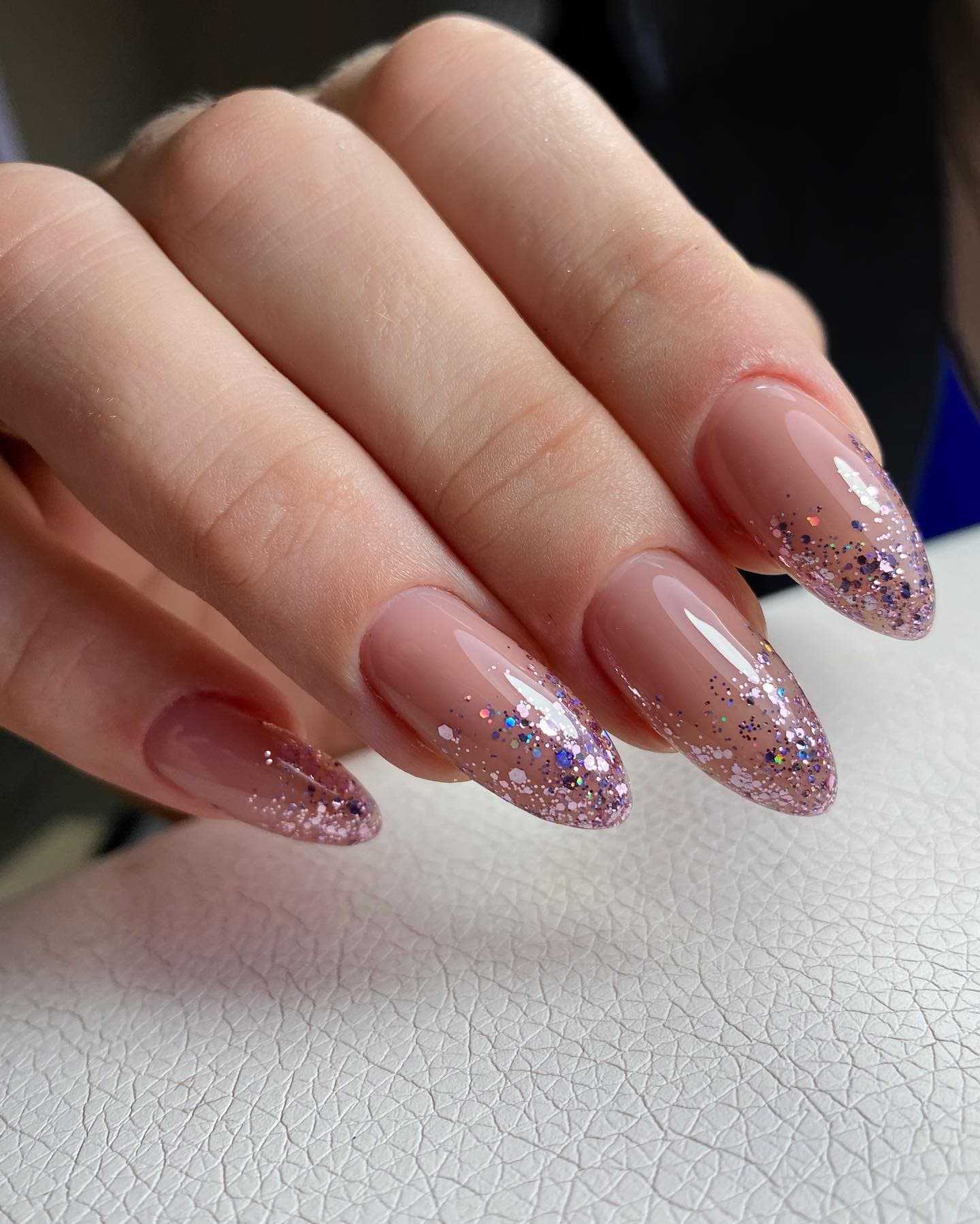 Маникюр омбре с добавлением втирки
