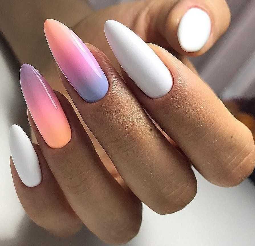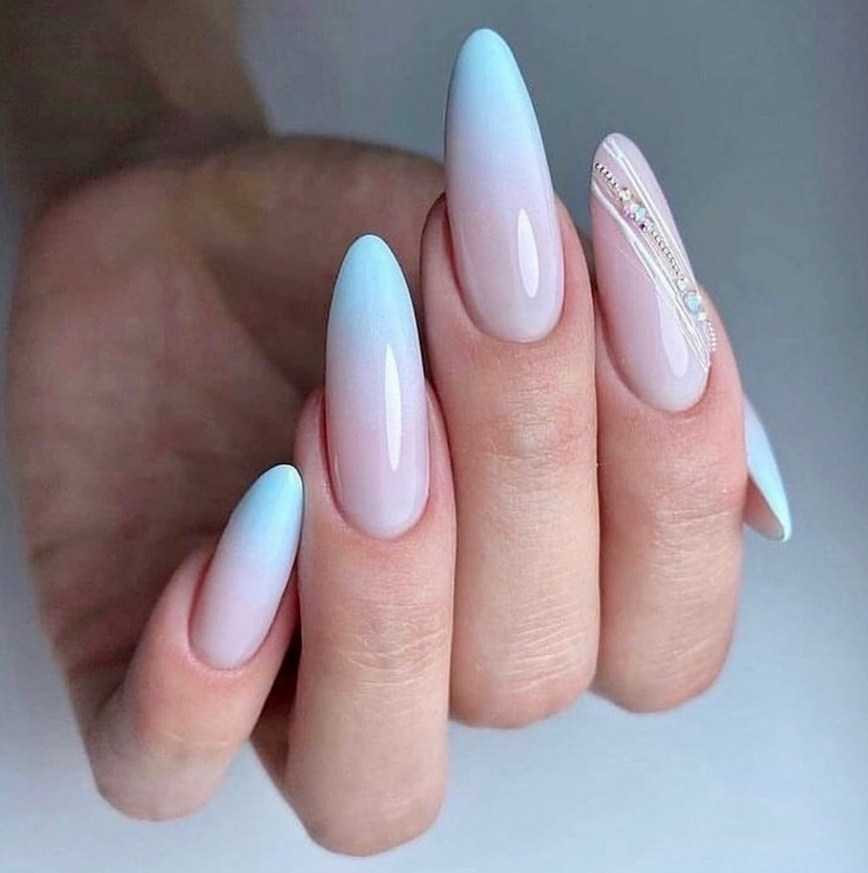 Маникюр омбре на длинные ноготки. Обладательницы миндалевидных ноготков полюбили «омбре» всеми фибрами души, и немудрено, ведь на их ручках он смотрится особенно выигрышно.