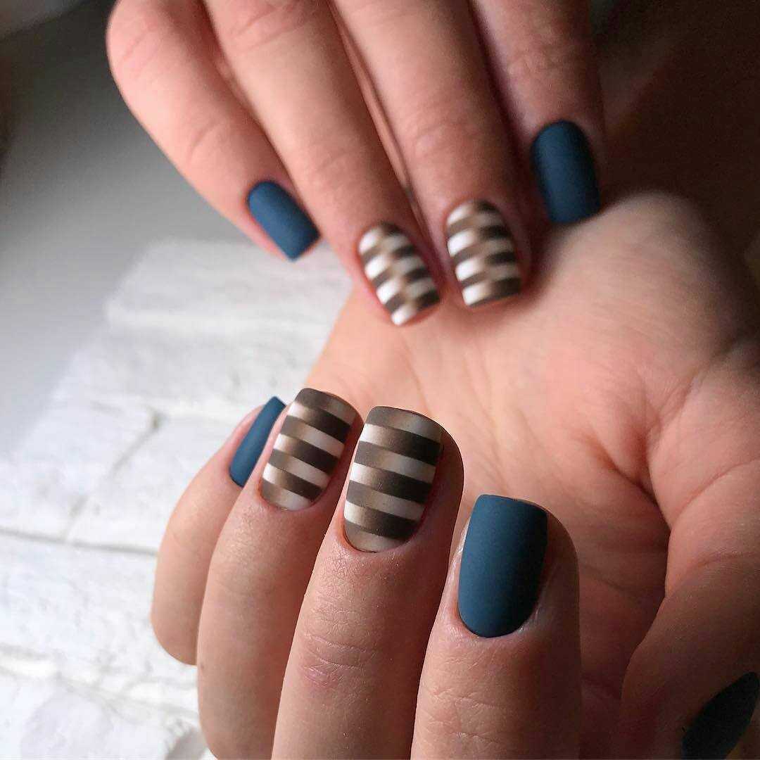 Дизайн ногтей в полоску – вариант не только для отдыха на море. Многое зависит от подобранных оттенков. Кроме того, вовсе не обязательно делать полоски на каждом ноготке. Наиболее оптимальное решение – использовать их только на нескольких ноготках.