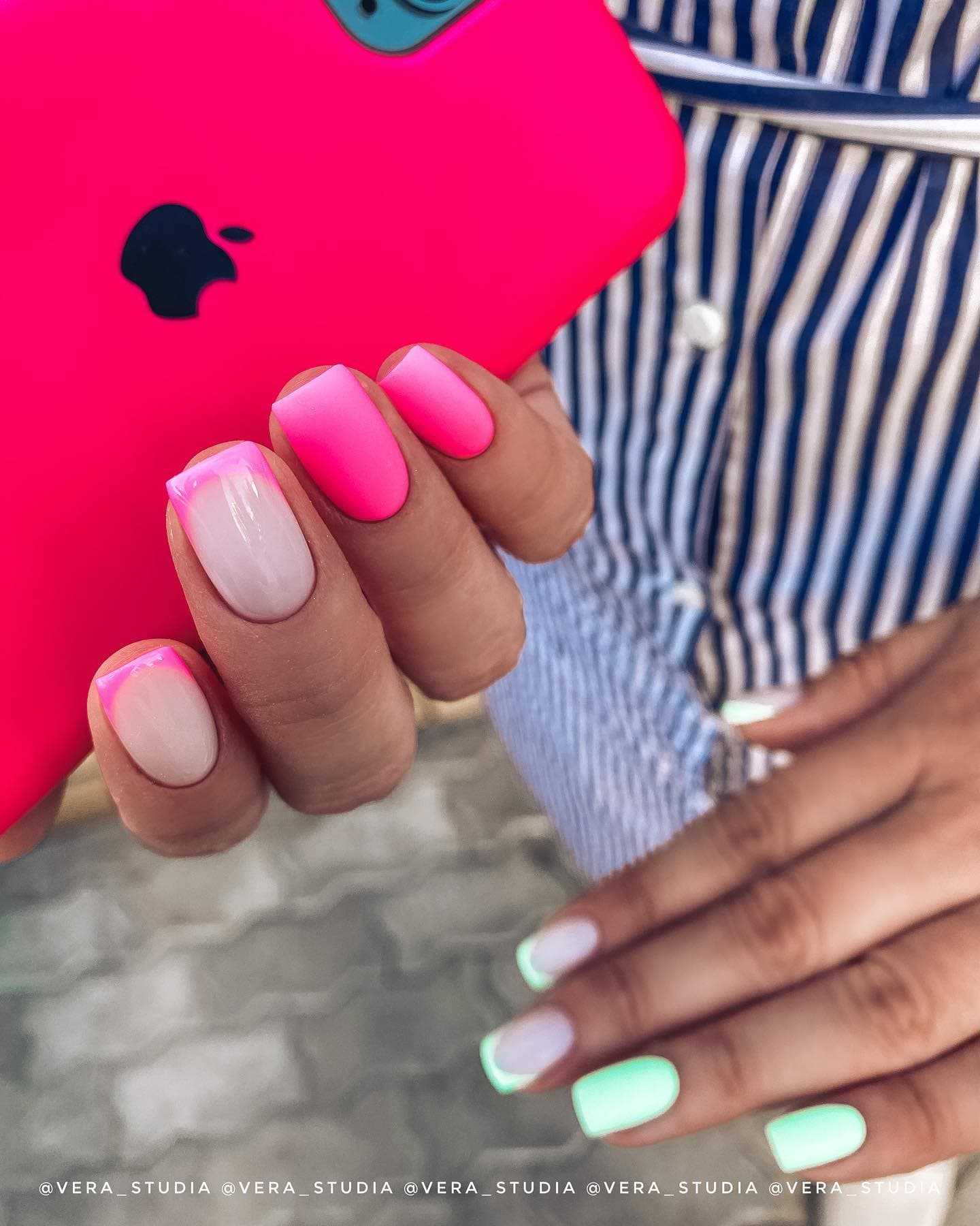 Напоследок, ярко-розовые тона — светящийся неон или ядреная фуксия — лучшее решение, когда стоит задача привлечь к себе внимание и выглядеть стильно, а не пестро. Помимо того, что эти оттенки идут практически всем женщинам, они еще и очень модно смотрятся на ногтях