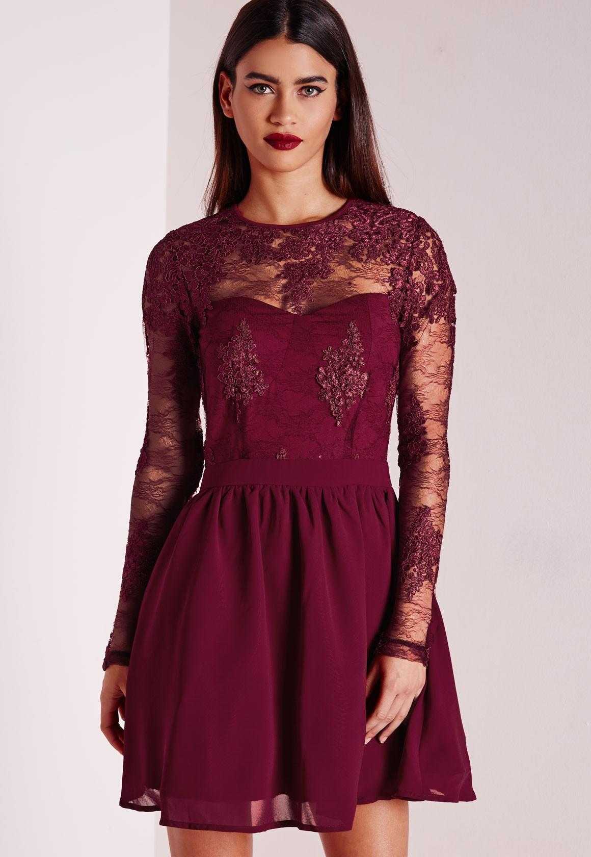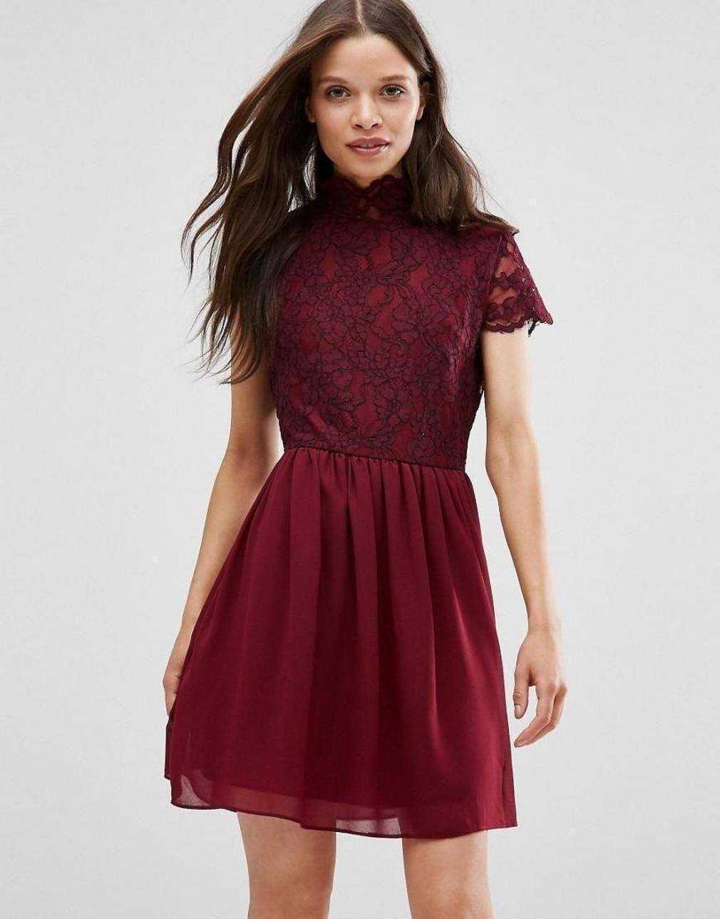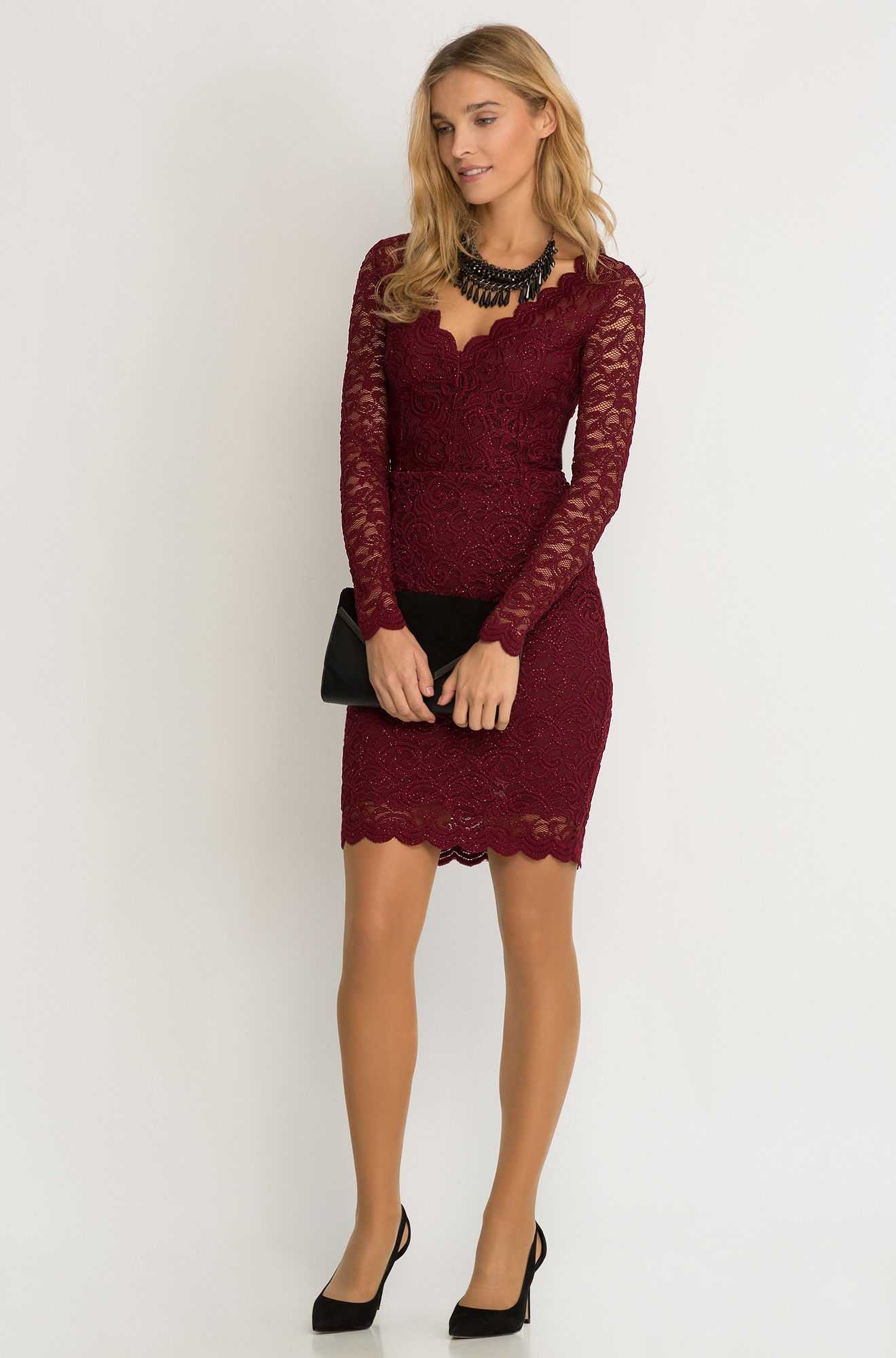 Кружевное оформление удивительным образом дополняет и оттеняет красоту и переливы бордового цвета. Торжественность и элегантность образа варьируется в зависимости от количества кружева и его расположения.