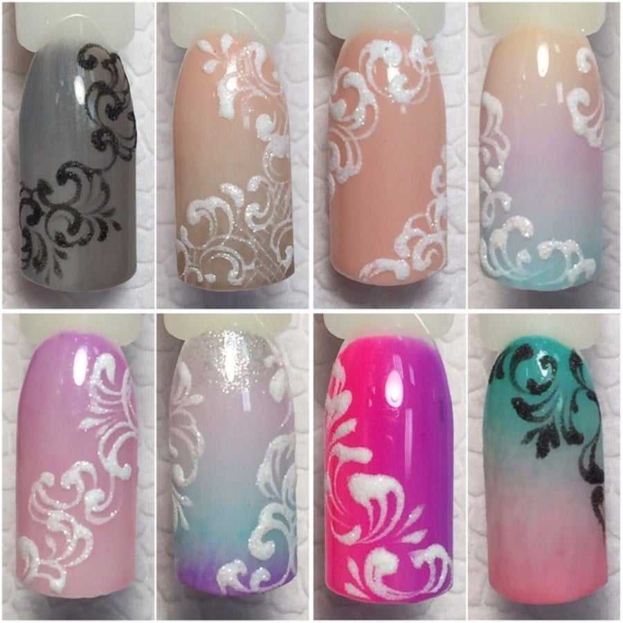 Отличным решением будет использование этих цветов в технике омбре или со сложными декоративными элементами.