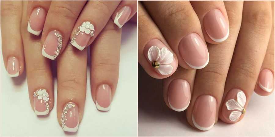Французский дизайн ногтей на свадьбу самый популярный на протяжении многих лет и хоть сейчас уже полно новинок в мире маникюра, все равно большинство невест до сих пор отдают предпочтение именно френчу. Дополнить его можно кружевными узорами, стразами, цветами, бантиками, росписью и даже яркими оттенками.