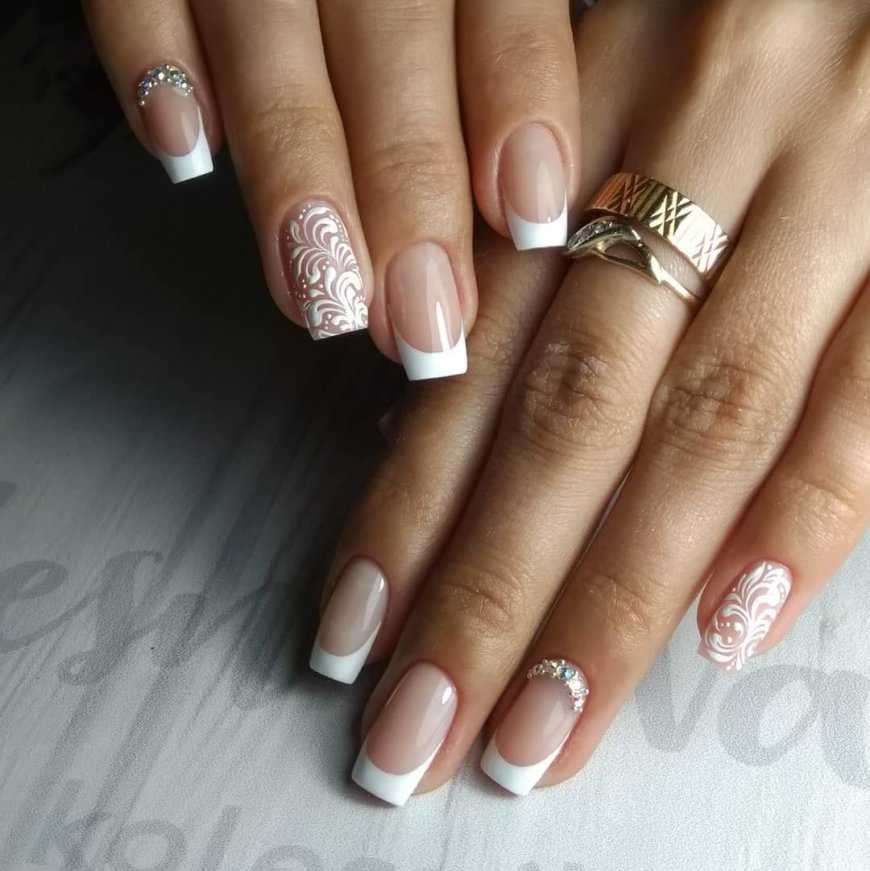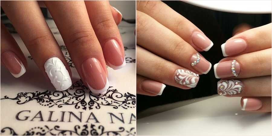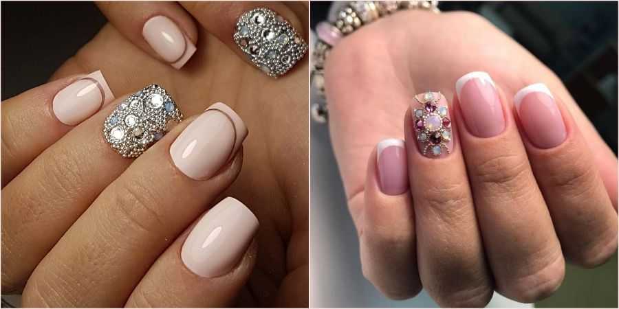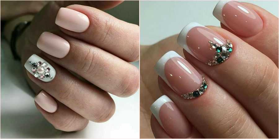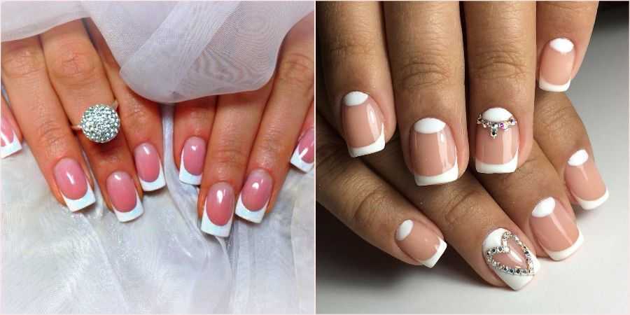 Свадебный французский маникюр или другие варианты покрытия вполне можно украсить стразами