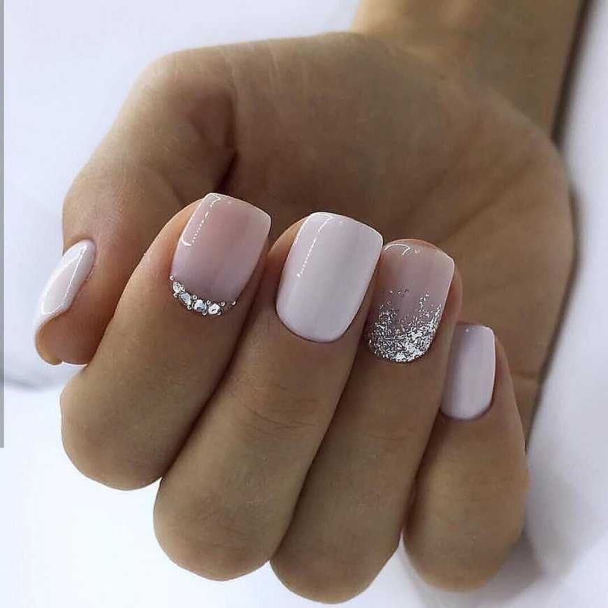 Блёстки – еще один вариант модного дизайна ногтей невесты. Такой вариант смотрится очень привлекательно. Блестки размещают по всей поверхности покрытия, только на лунке или кончике, декорируют ими френч и другие варианты маникюра.