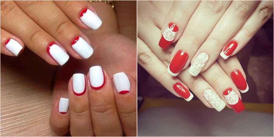- Вечно актуальный френч — в его создании можно использовать пастельные, черные, белые и красные цвета.