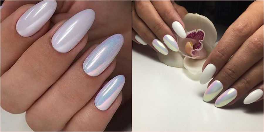 Чтобы сделать красивый свадебный маникюр, можно использовать жемчужную втирку. Она придаст блеск и сияние ногтям, сделает их нежными, переливающимися. Такой декор можно сделать на каждом ногте, либо на 1-2, чтобы дополнить пастельные тона лака, оживить и разнообразить их.