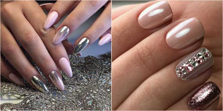 Дизайн при помощи зеркальной втирки розового оттенка тоже станет прекрасным дополнением к любому образу. Такой маникюр точно не будет казаться скучным, а завораживающие переливы цветов никого не оставят равнодушными.