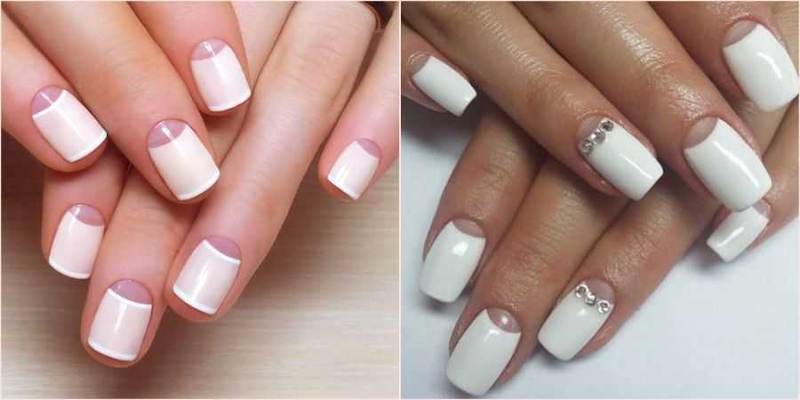 Чаще всего этот маникюр выполняют в светлых и пастельных тонах, таких как нежно-розовый, светло-голубой, молочный, белый или бледно-персиковый. Уместно будет добавить к декору бульонки или небольшие стразики.