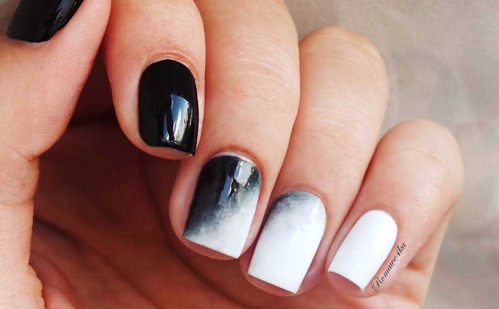 Очень популярен в наступающем сезоне маникюр в технике «вуаль», когда розовый ноготок словно покрыт нежной полупрозрачной черной вуалью. Пусть таким будут один ноготь, на остальные нанесите простой французский маникюр в двух цветах: черном и розовом.