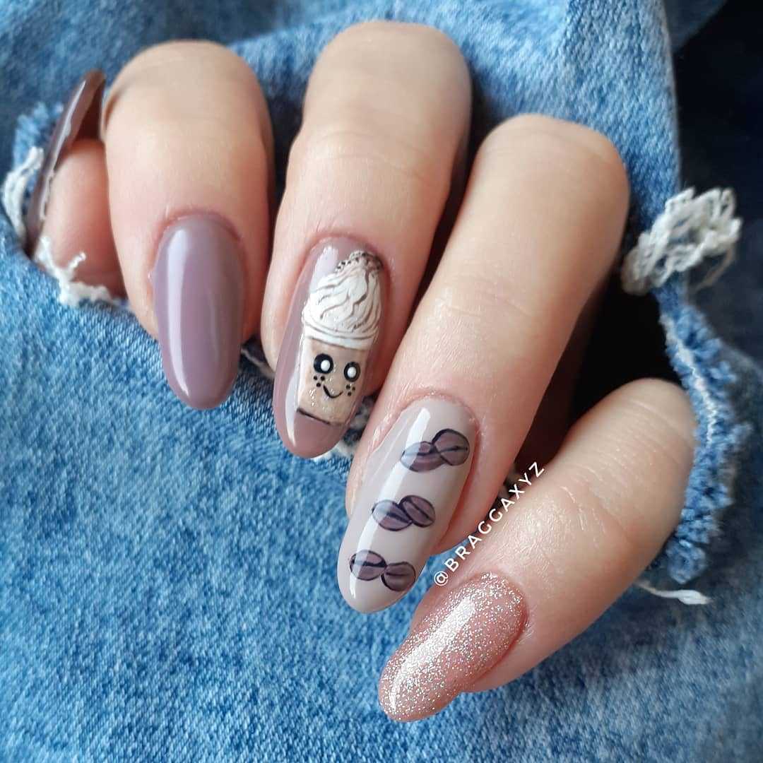 К универсальным идеям маникюра 2023 на миндальные ногти относится однотонное или градиентное покрытие кофейных оттенков. Эспрессо, капучино, лате или американо с молоком – выбирайте свой вариант модного нейл-дизайна на миндальную форму ногтей. За кофейным маникюром не обязательно отправляться в салон, ведь можно накрасить ногти дома, если есть подходящий лак модного оттенка.
