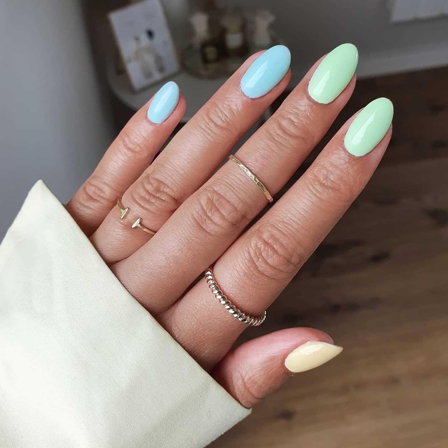 Необычные сочетания цветов в маникюре, особенно, если форма – миндаль, всегда бросаются в