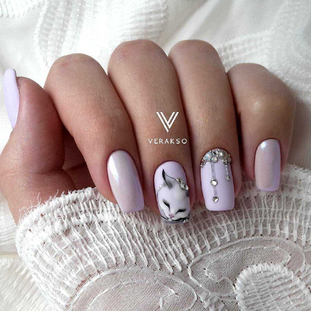Маникюр с кошками и стразами: дизайн, фото