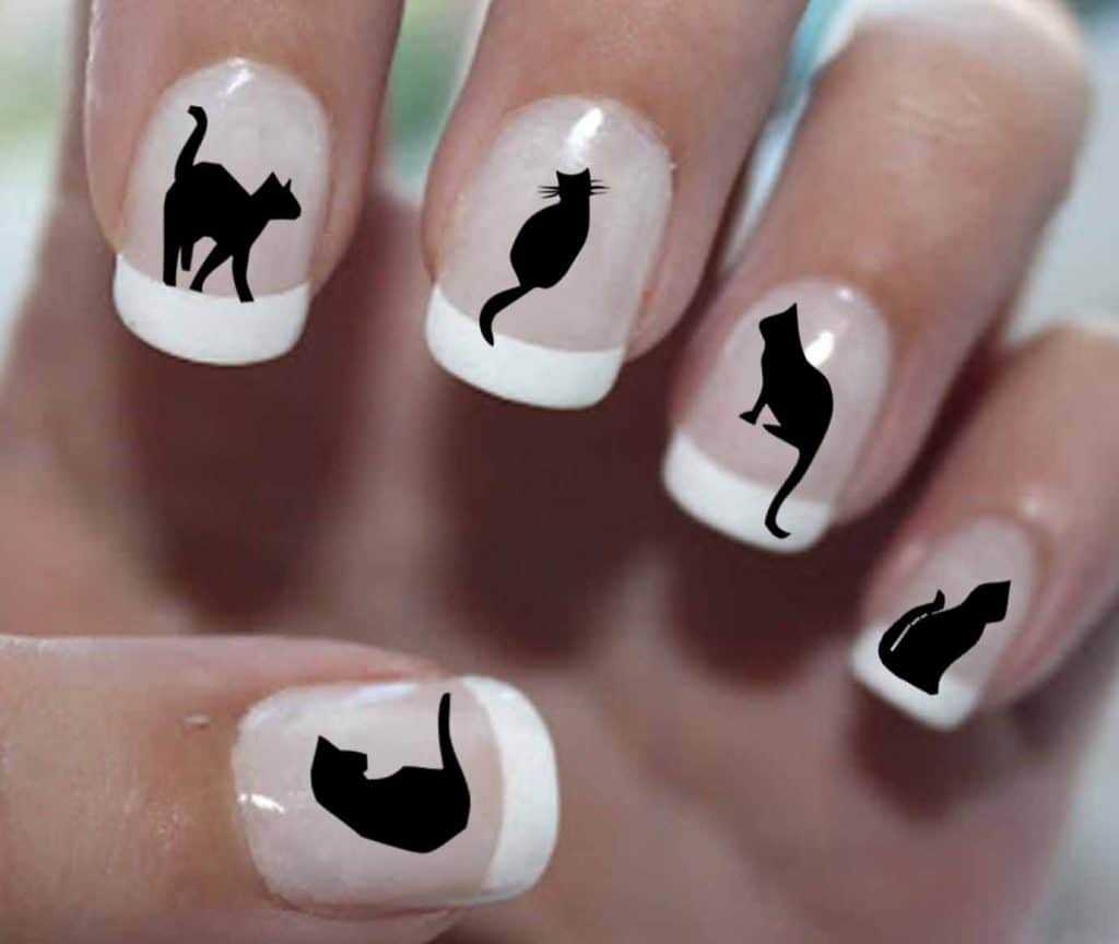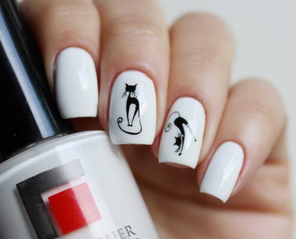 Белый френч с черной кошкой: дизайн ногтей