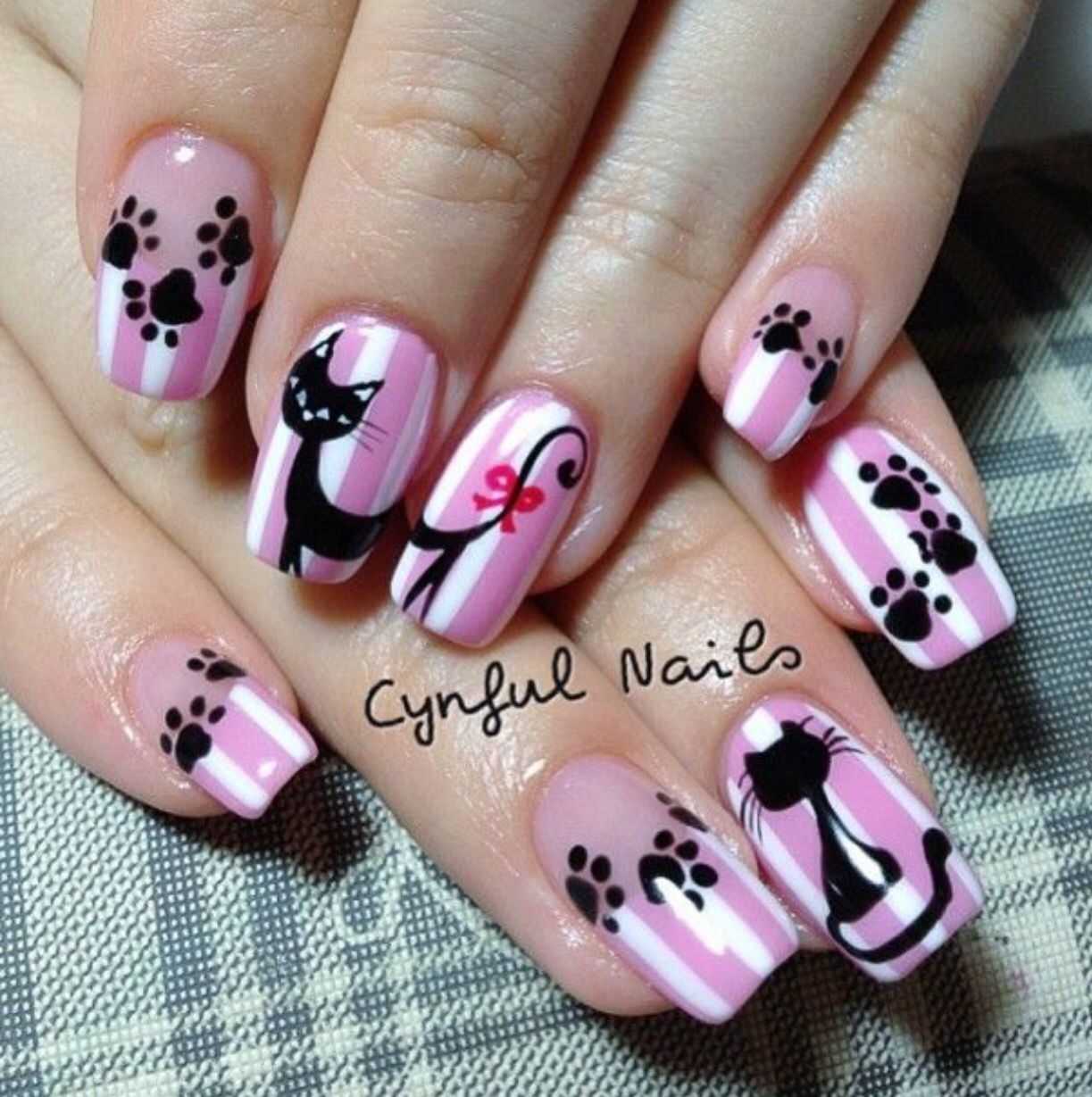 - рисование кошек на каждом ноготке.