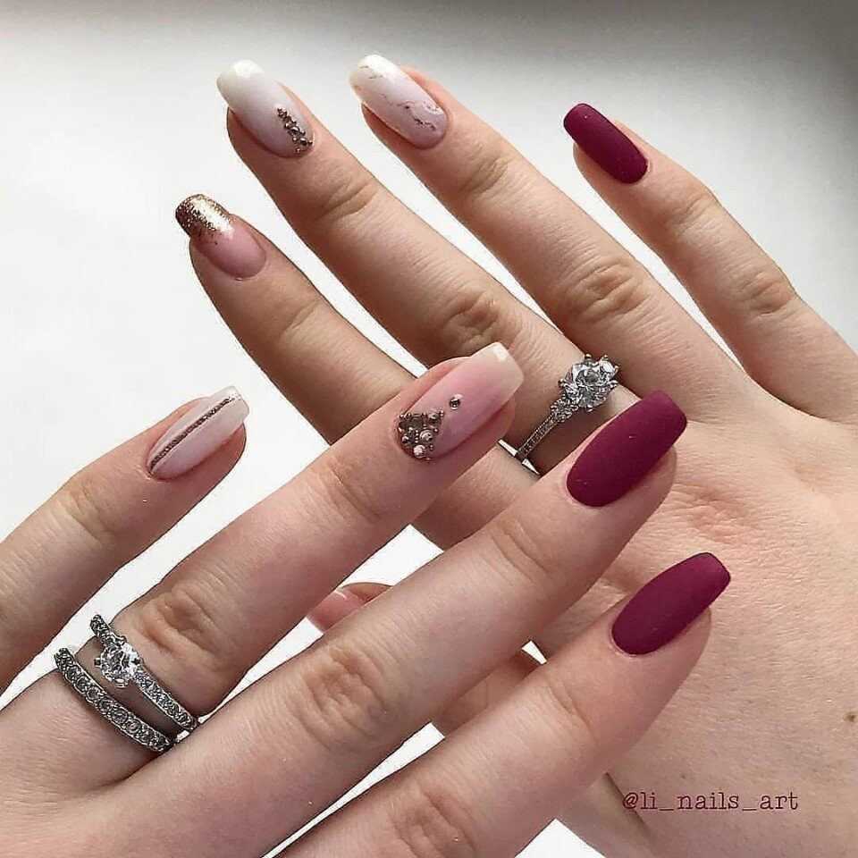 Бордовый маникюр всегда смотрится шикарно, стильно и привлекательно. Это чудесная возможность создать сдержанный повседневный или яркий праздничный нейл-арт, который не только подчеркнёт вашу индивидуальность, но и будет смотреться достойно. Почувствуйте себя королевой!