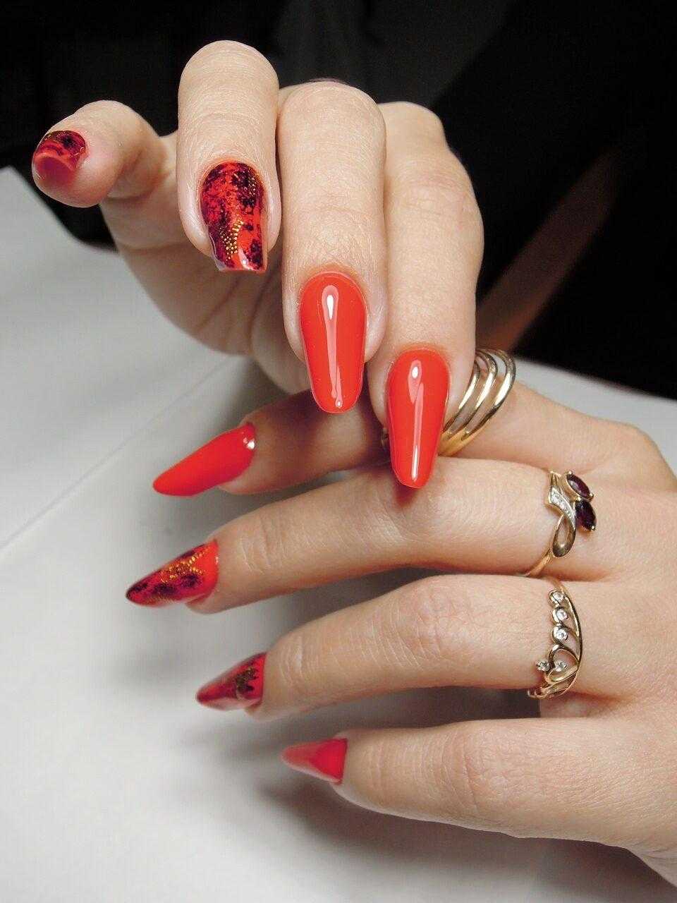 Красные нарощенные ногти – гель лак и шеллак: дизайн