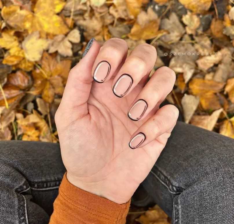 Геометрический орнамент прекрасно дополняет монохромную гамму, при этом оставляя маникюр таким же сдержанным, строгим. Особенно элегантно выглядят фигуры и линии, нанесенные черными красками, на нюдовой поверхности. Это оптимальный выбор для тех, кто ценит изысканность простых решений.