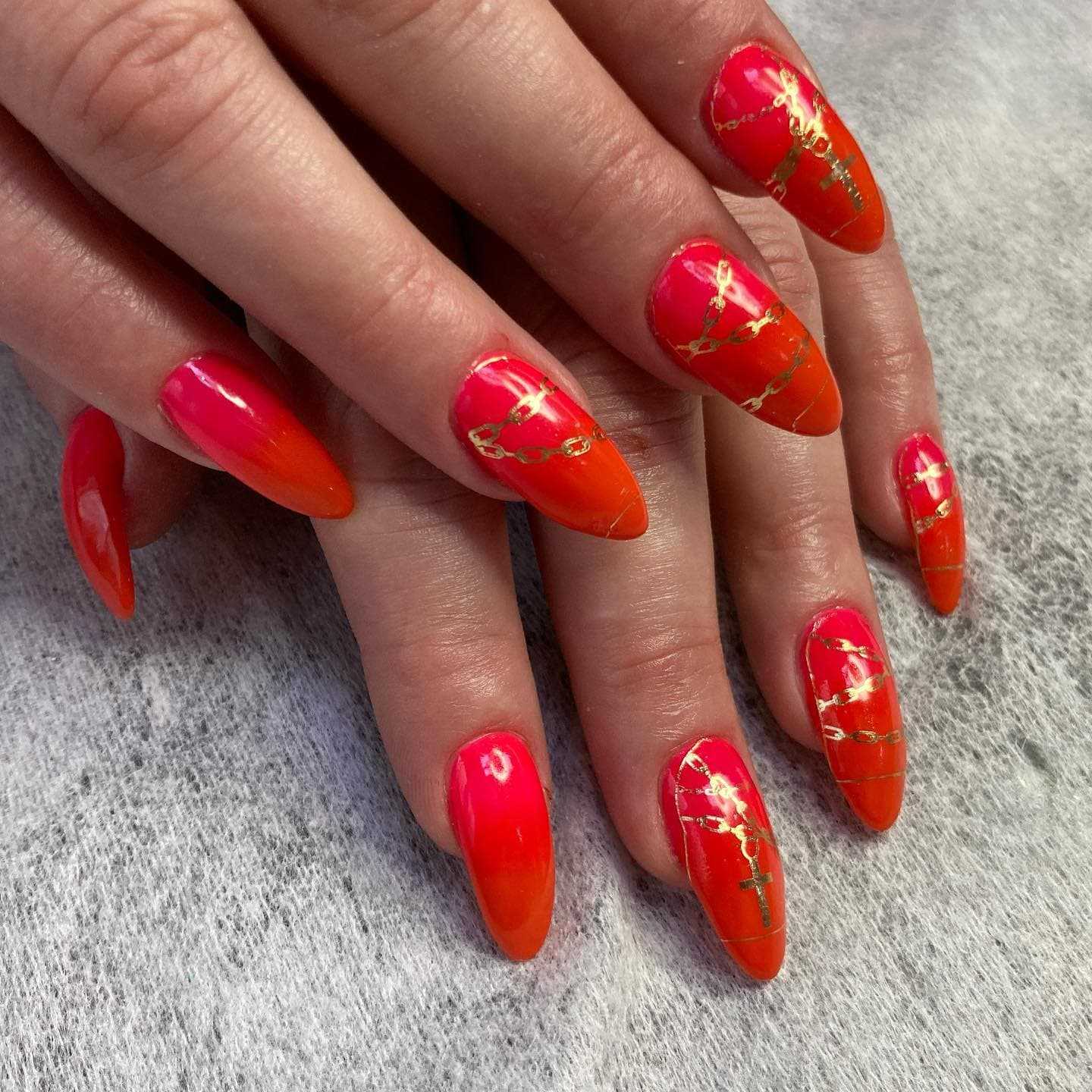 Омбре с участием красного цвета — очень свежий и необычный тренд, который можно обыграть различными способами. Итоговый стиль такого маникюра будет зависеть от выбранных цветов, поэтому комбинаций здесь может быть масса. Сделав плавный переход из бело-розового в красный, ты получишь максимально сдержанный и элегантный нейл-арт с ноткой оригинальности. Желто-красный градиент — готовый номинант премии “Летний маникюр 2023”. А красно-черное омбре дополнит дерзкий образ.
