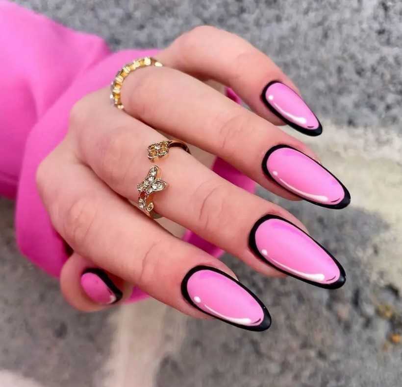 - экстра – когда между двумя цветами выделяется контрастная линия третьего цвета. Например, ноготь прозрачный, кончик черный, а разделительная линия белая.
