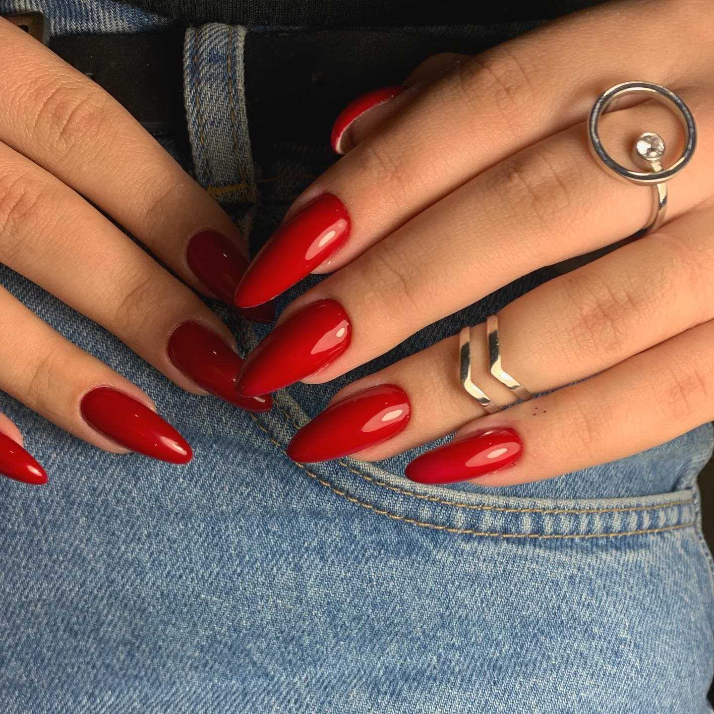 Красный маникюр с дизайном миндаль на длинных ногтях не теряет своей актуальности и в 2023 годах. Чтобы он смотрелся максимально трендово, нужно учесть пару советов для обладательниц внушительной ногтевой пластины: