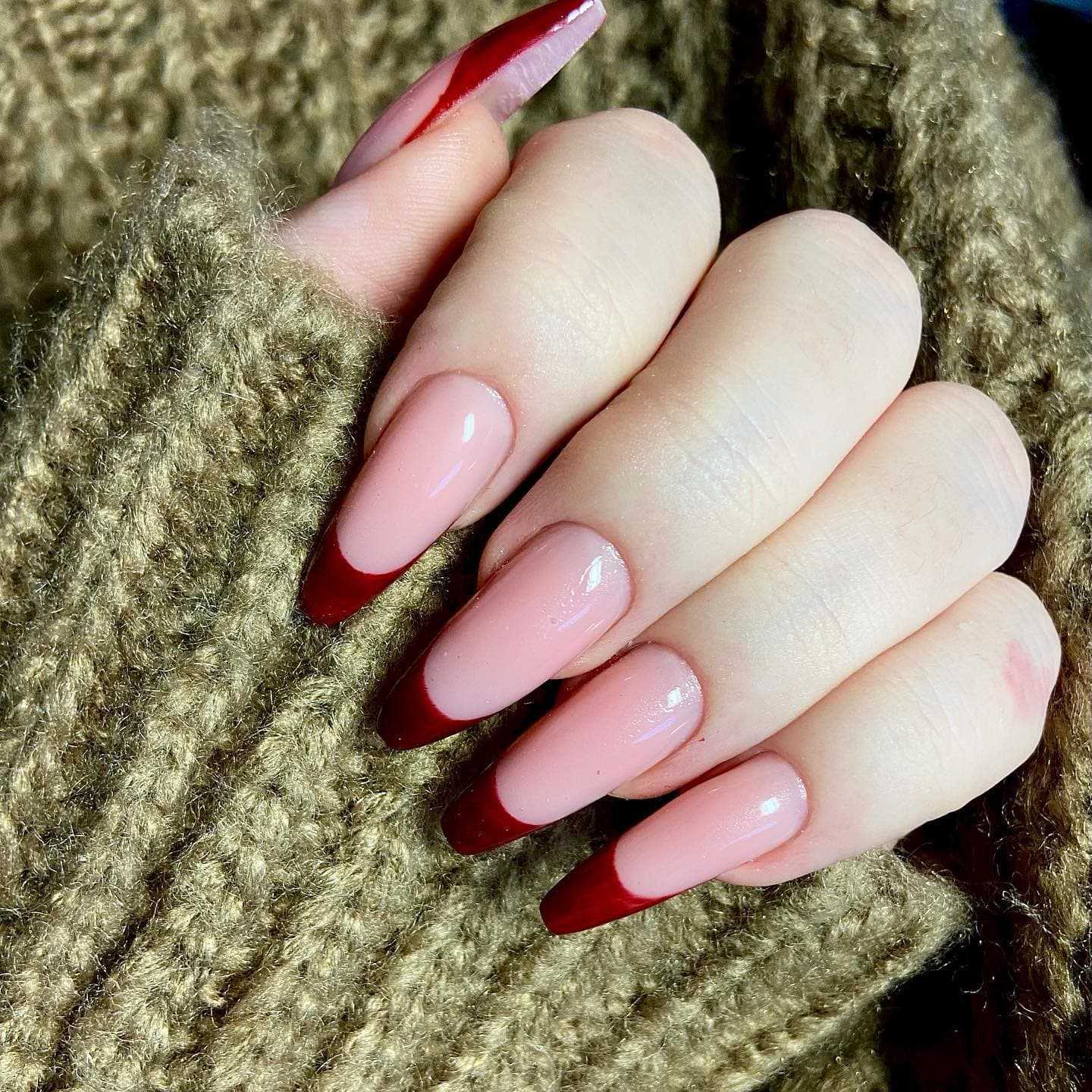 Красный французский маникюр