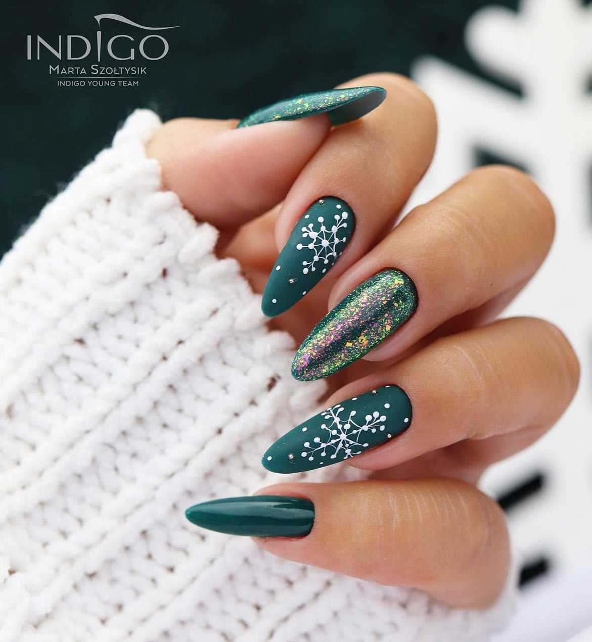 Укрась блестящими кусочками весь ноготь или акцентируй внимание на некоторых пальцах