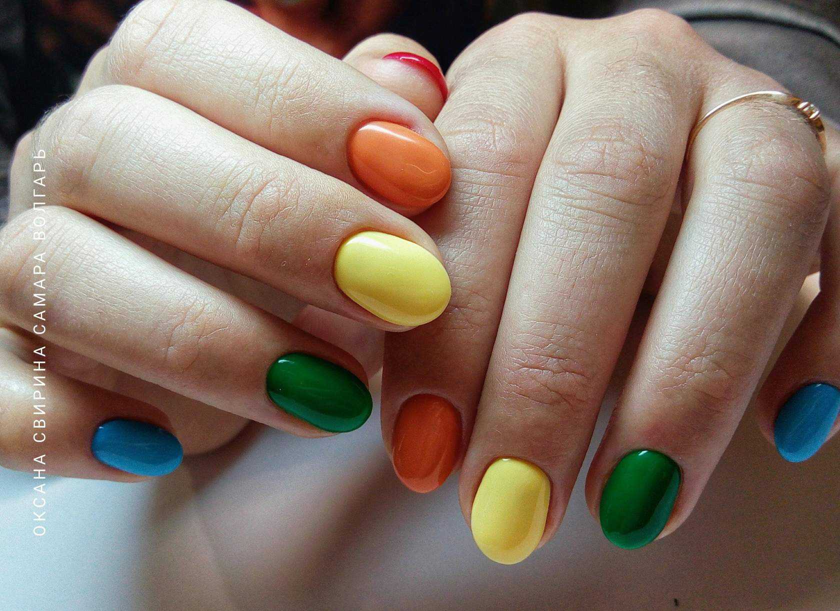Классический красный цвет гель-лака совместим со многими цветными оттенками. Модной тенденцией этого сезона является многоцветный модный маникюр. Однотонное окрашивание выглядит скучновато, именно поэтому дизайнеры разработали наиболее удачную цветовую палитру, которую можно смело смешивать между собой.