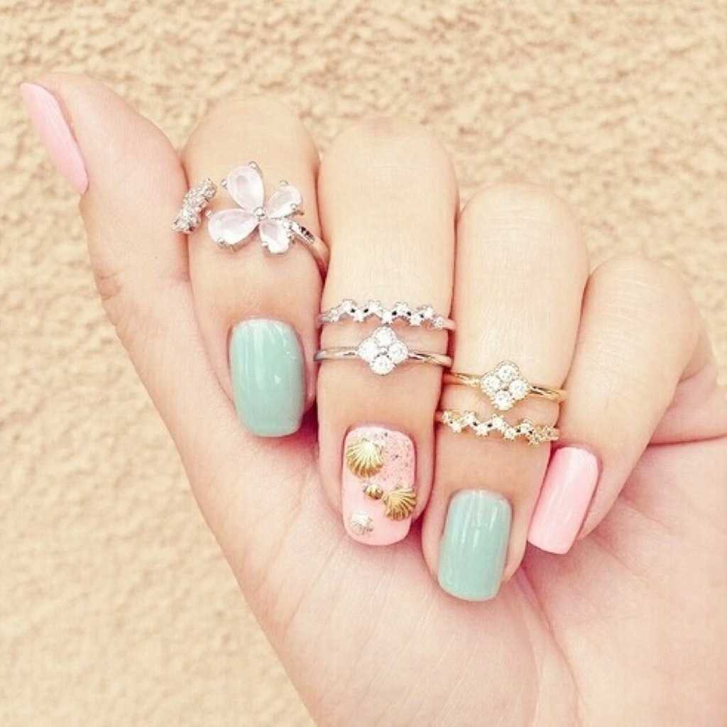 Именно они являются одним из самых морских символов, поэтому ракушки идеально подходят для маникюра в морском стиле. Среди их преимущества называют то, что в таком дизайне нет ограничений. То есть вы можете нанести ракушку только на безымянный пальчик или же украсить ними абсолютно все ноготки. Чтобы бы вы не выбрали, эффект будет потрясающий.